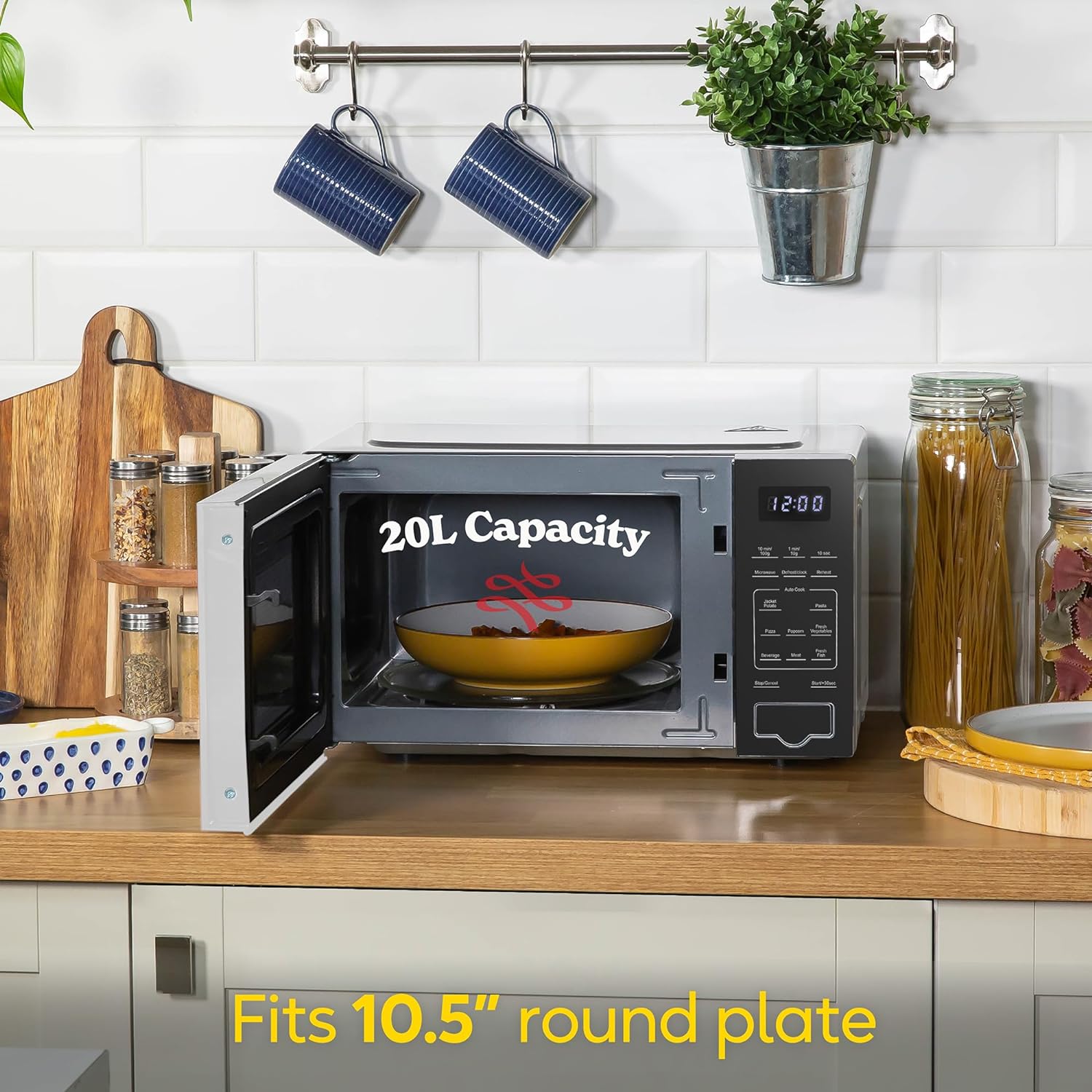 COMPACT DESIGN – (H)25.6 x (W)45.1 x (D)35.3 CMs microwave with 20L capacity. This microwave will fit seamlessly onto any countertop without taking up too much room