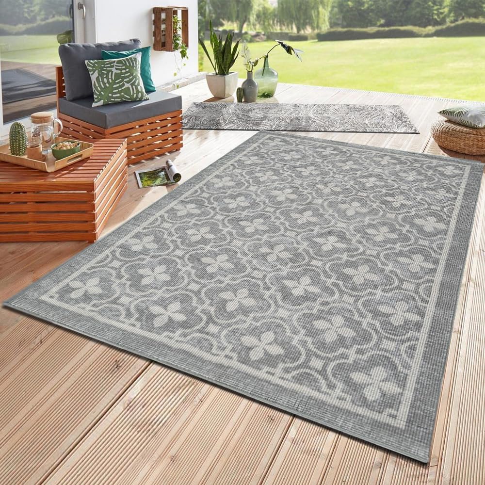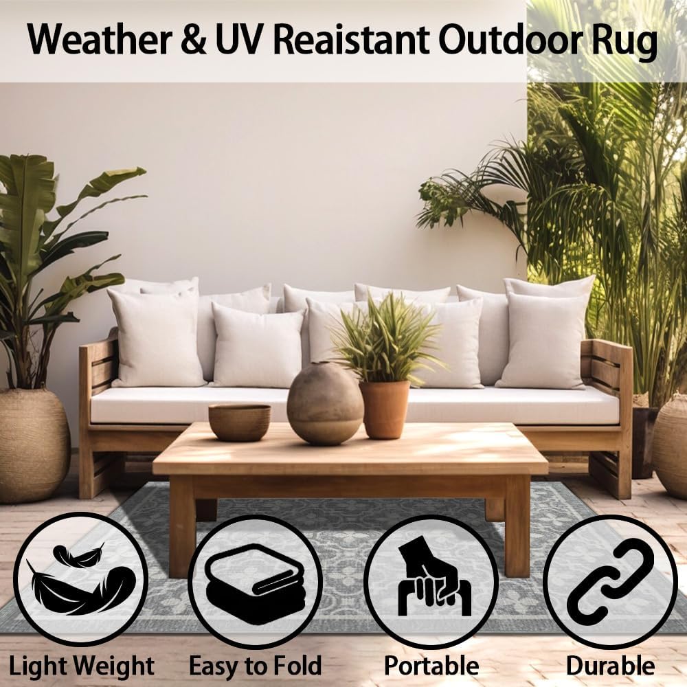 RV Murts Outdoor Rugs for Patios Waterproof, 120x180CM Lightweight Boho Garden Rug, Large Easy Cleaning&UV Resistant Indoor Outdoor Carpet, Portable Woven Garden Mat for RV, Balcony, Beach, Deck, Grey