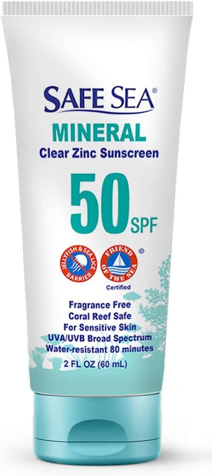 Safe Sea Zinc Oxide Sunscreen SPF50 | Clear Mineral Face Sunscreen Without White Cast | Anti-Jellyfish Sting Protective Lotion | Coral Reef Safe | Travel Size – 60ml (1 tube)