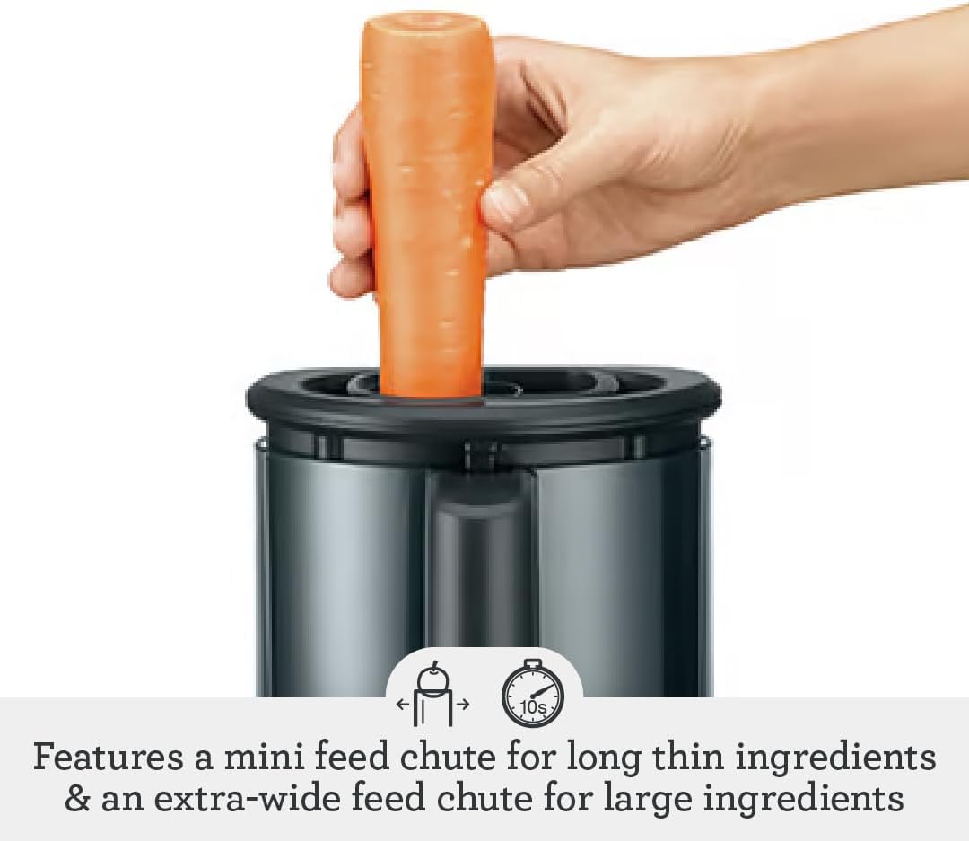 MULTIPLE CHUTE OPTIONS: The extra-wide feed chute cuts longer slices and makes processing faster and easier; The mini feed chute prevents long thin ingredients like carrots from tipping over during slicing