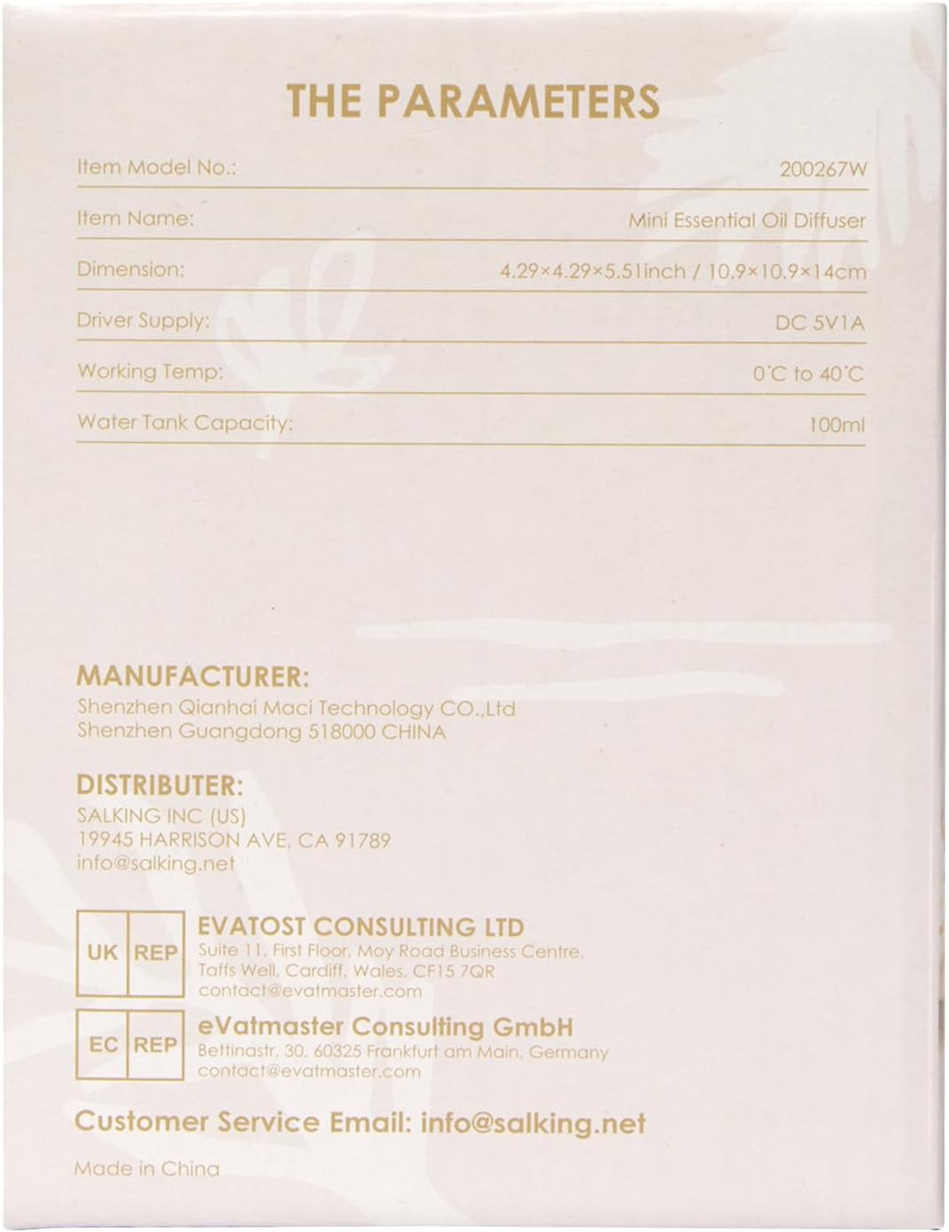 Be the first to review “SALKING Essential Oil Diffuser, 100ml Small Aromatherapy Diffuser, Ultrasonic Diffusers for Essential Oils, Cool Mist Humidifier with Warm White Lights, Auto Shut-Off Function, for Office Home”