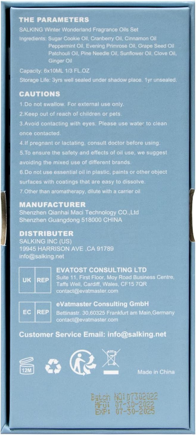 ❄️ Safety – This 100% pure essential oil blend is perfect for the holidays and the whole winter season. SALKING premium grade fragrance oils are highly concentrated, enhanced formulations designed by our master perfumer. Our winter fragrance oils set are packaged in dark amber bottles to avoid scents diminishing due to light. And meet rigorous quality standards which are vegan friendly and zero testing on animals. Please note that these scented oils are for external use only.