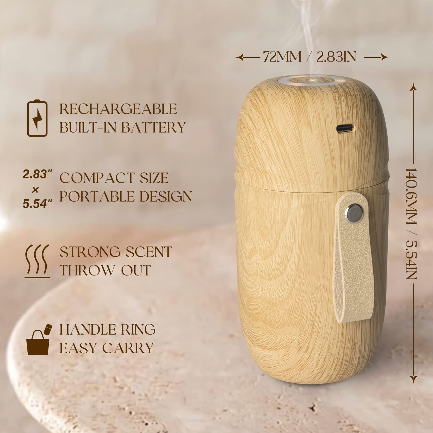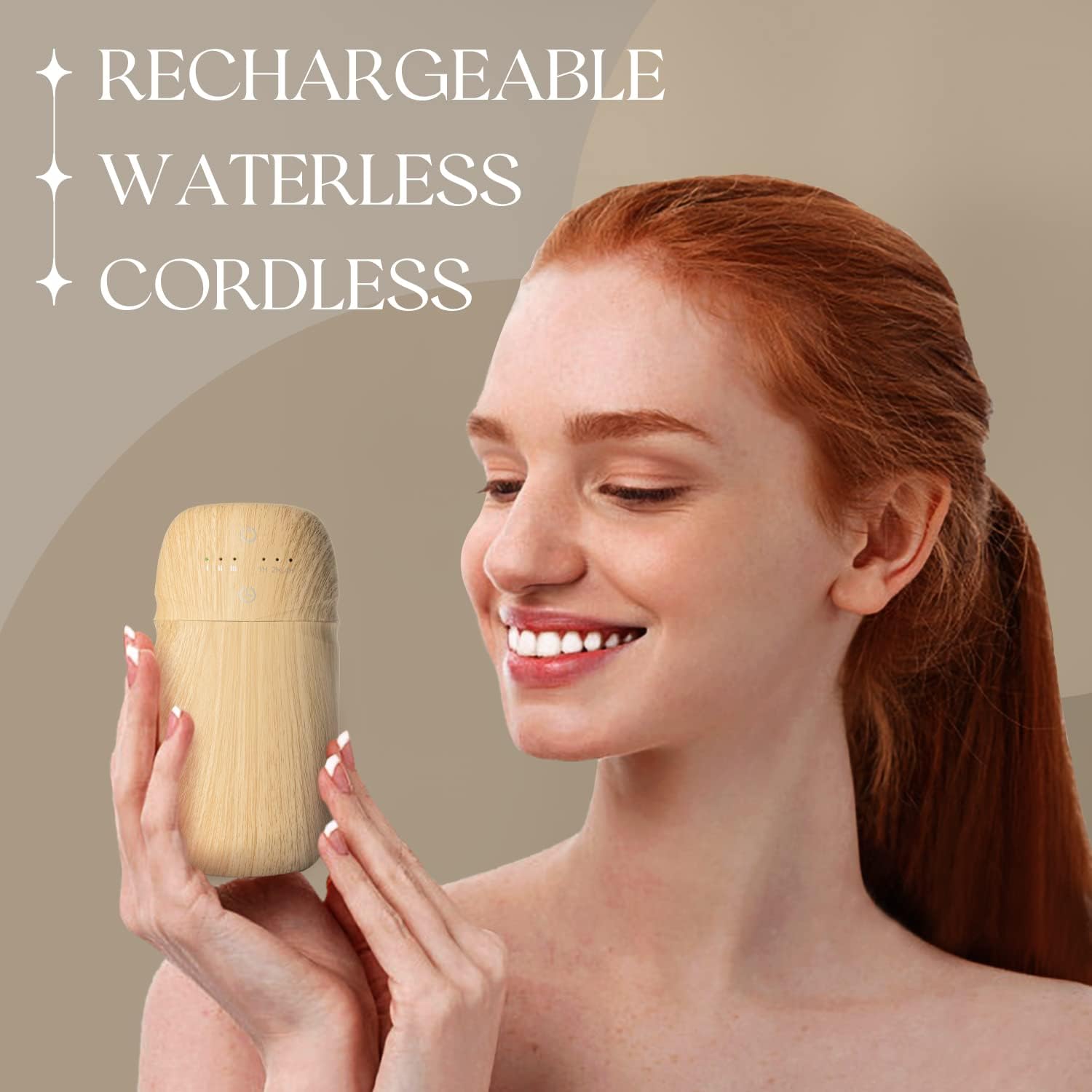 SALUBRITO Waterless Essential Oil Diffuser, Rechargeable Nebulizing Diffusers for Home, Portable Aromatherapy Diffuser for Essential Oils, Wood-Grain