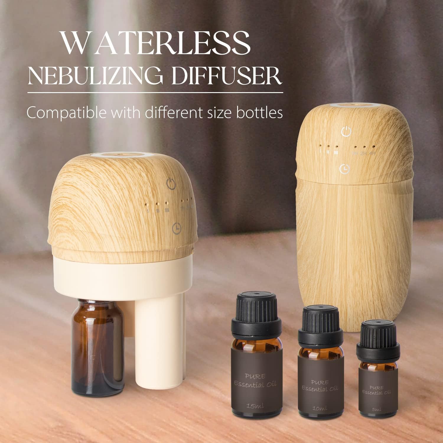 ✅ Waterless Nebulizing Essential Oil Diffuser – Waterless Essential Oil Diffuser has a nebulizing design that atomizes essential oils without heat or water. The build of this waterless diffuser has a wood-grain design, makes it easy to fit in with any aesthetic. It’s a mess-free way to experience the benefits of aromatherapy.