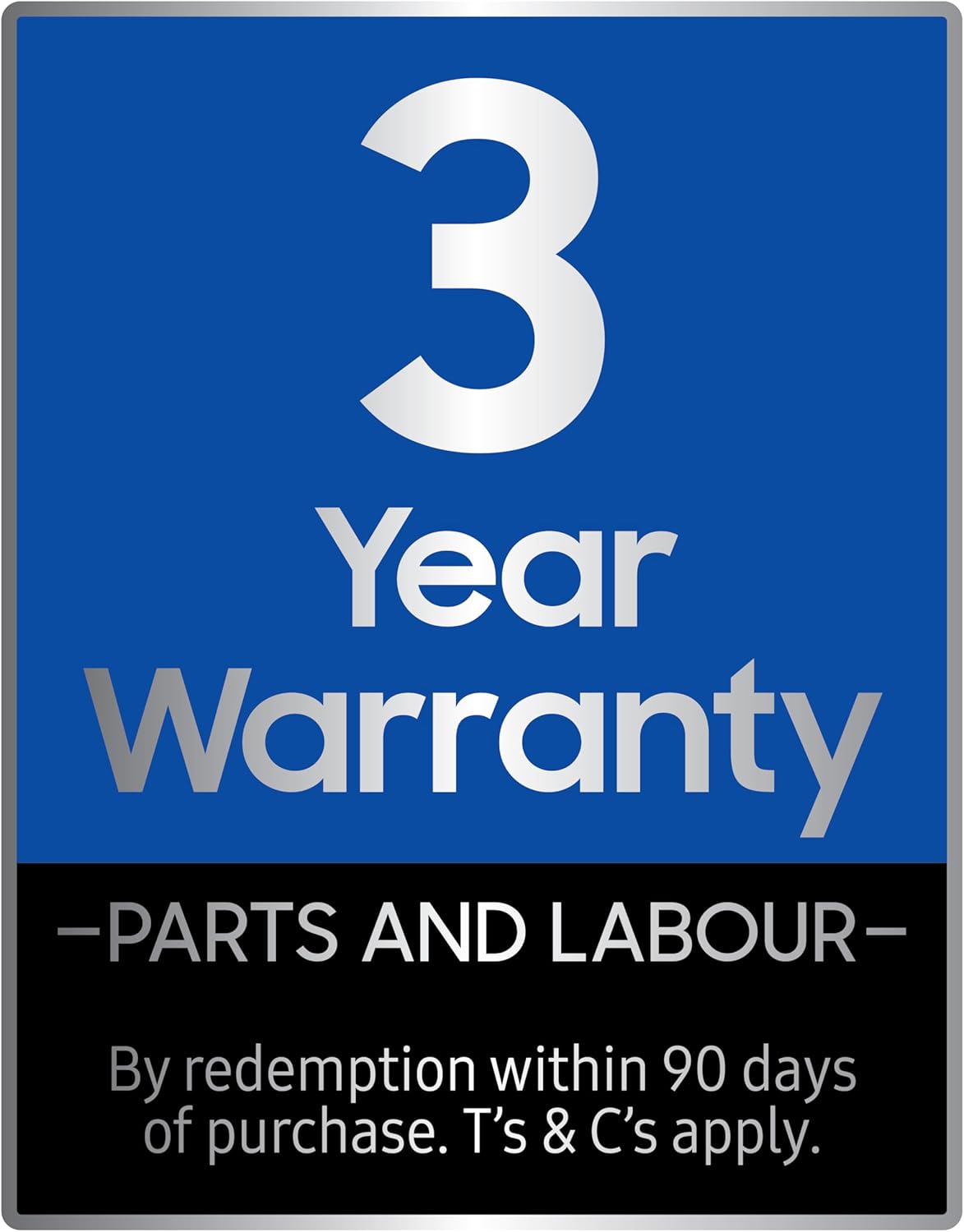 3 year warranty on parts and labour. *By redemption within 90 days of purchase. T&Cs apply