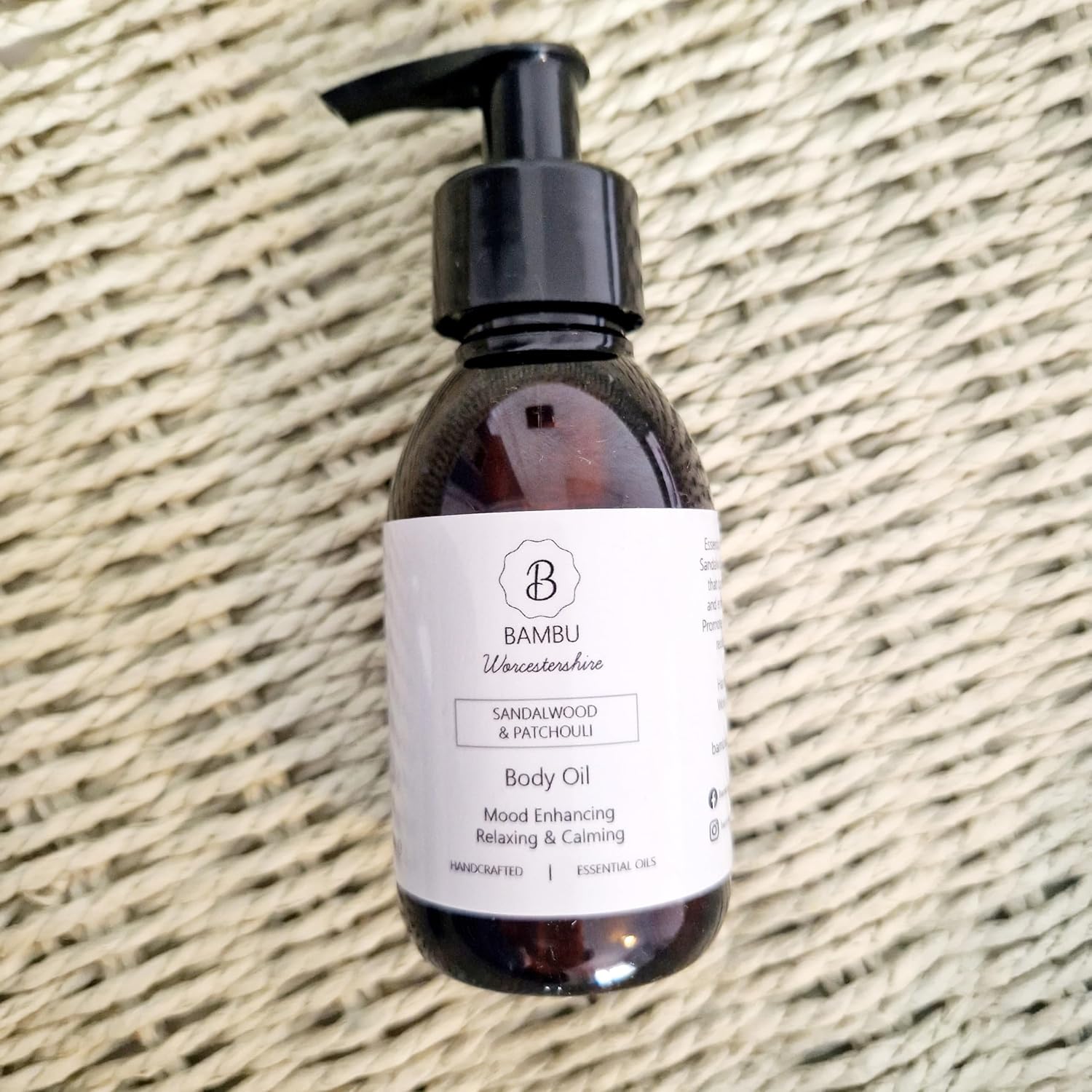Sandalwood & Patchouli Body Oil 125ml – Aromatherapy body oil – Body oil for dry skin – Sandalwood massage oil – Luxury Bodycare Gifts – Sandalwood Body Oil – Essential Oil Body Oil