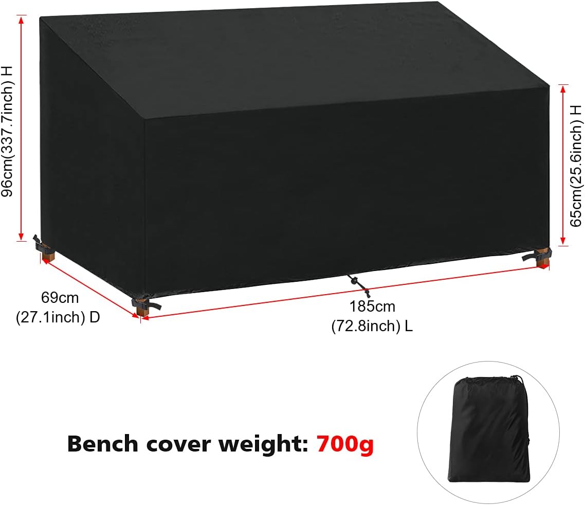 * Weatherproof, tearproof, dustproof, better protect your garden bench from leaves, dust, dirt, sun, rain, wind, frost and heavy snowfall.