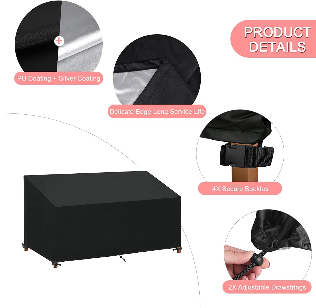 There are 2 adjustable drawstrings and 4 buckles at the bottom of the bench cover that ensure a secure hold. Windproof, the patio bench seat cover will not be blown away even in strong winds.