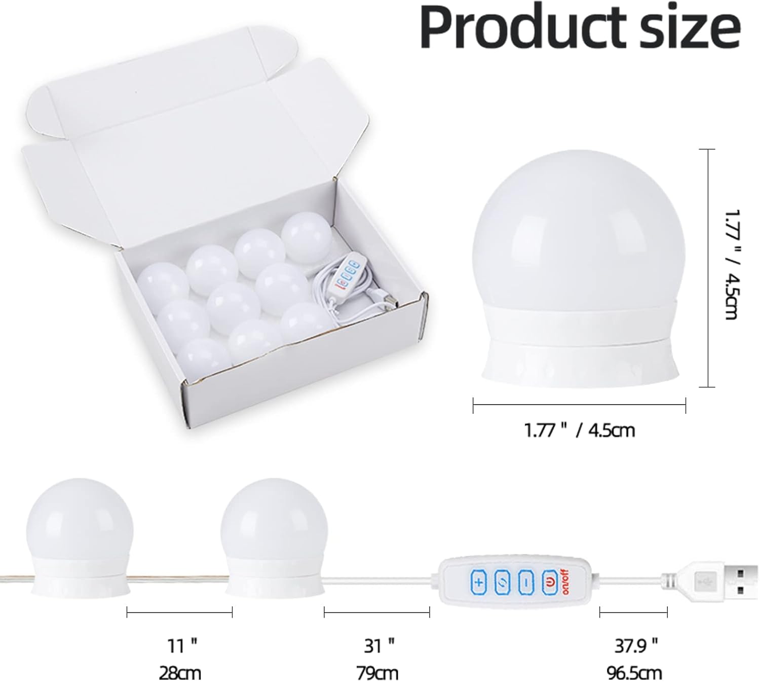 💡 Multiple Uses: Each kit comes with 10 vanity Mirror light bulbs, (4.2m bulb string + 2.30m usb cable), bright enough used for fill light, bathroom dressing table mirror lighting, or to decorate bedrooms, toilets, lounges, barber shops, art exhibitions, cafes, etc. It can also be a perfect gift for relatives and friends, on Valentine’s Day, Mother’s Day, Christmas, Thanksgiving, birthday or any other holiday.