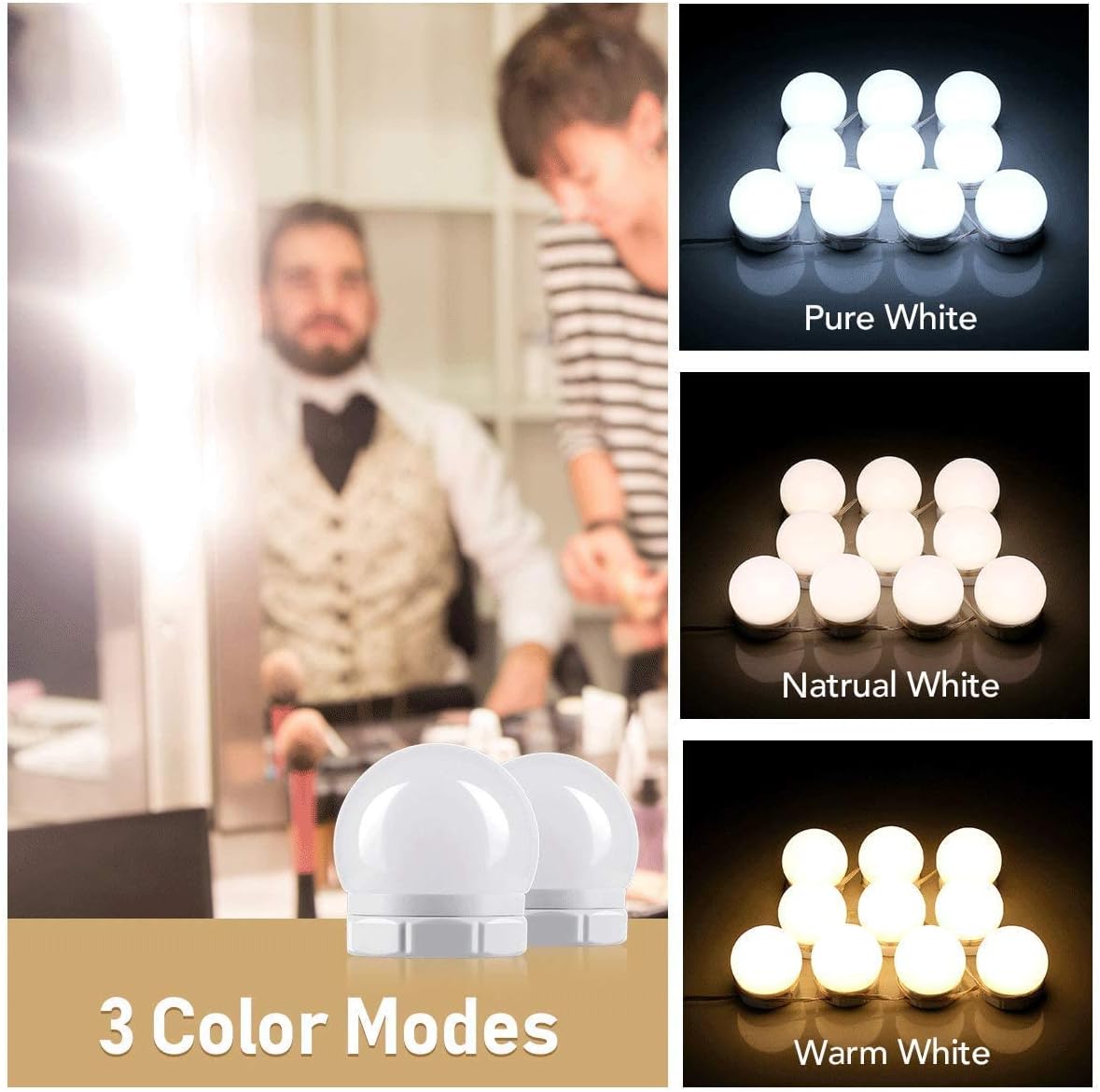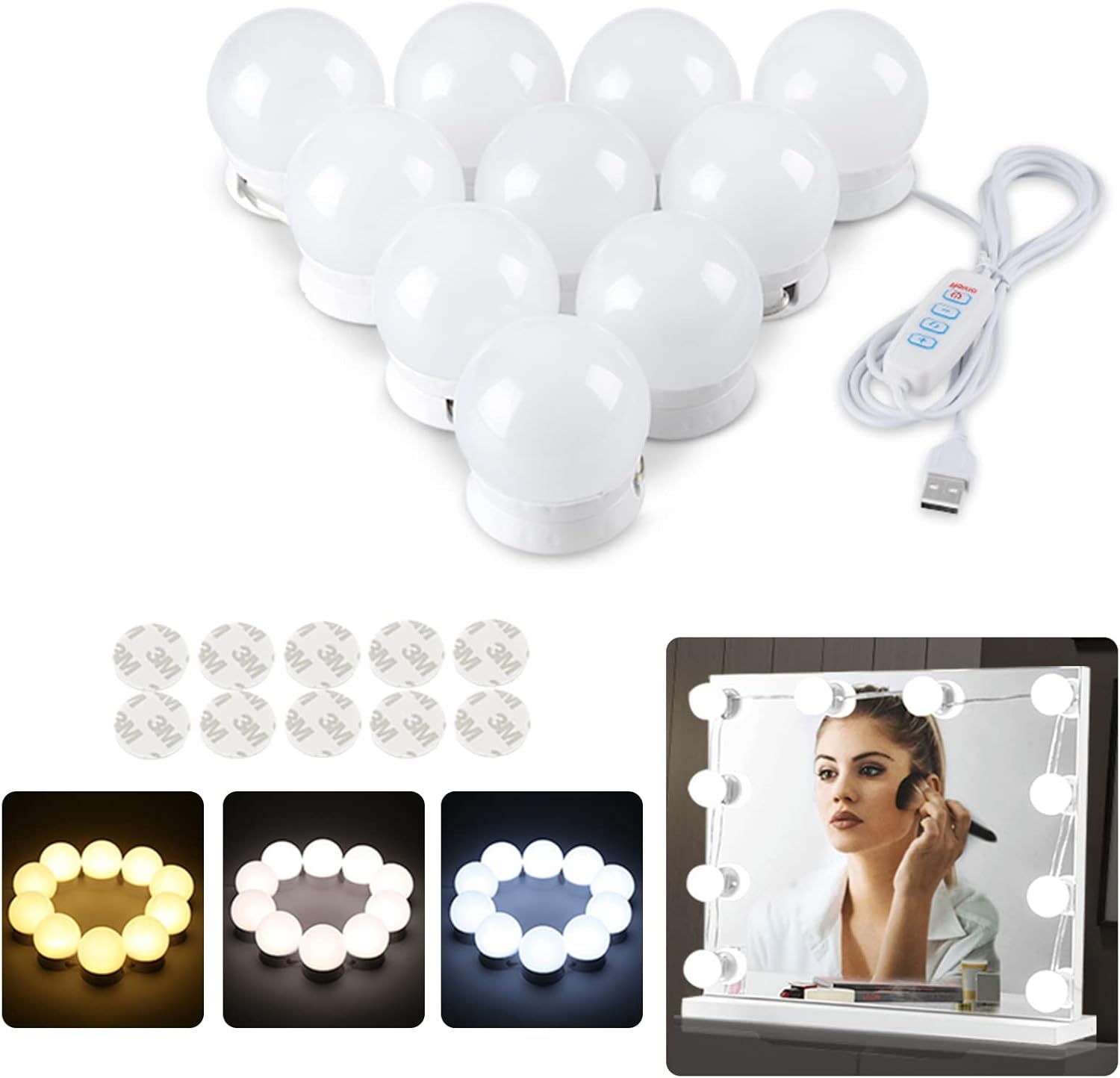 SANLION Vanity Mirror Lights, Hollywood Mirror Lights, Dressing Table Mirror Lights USB Cable with 10 Dimmable Bulbs Led 3 Color Modes, 10 Brightness