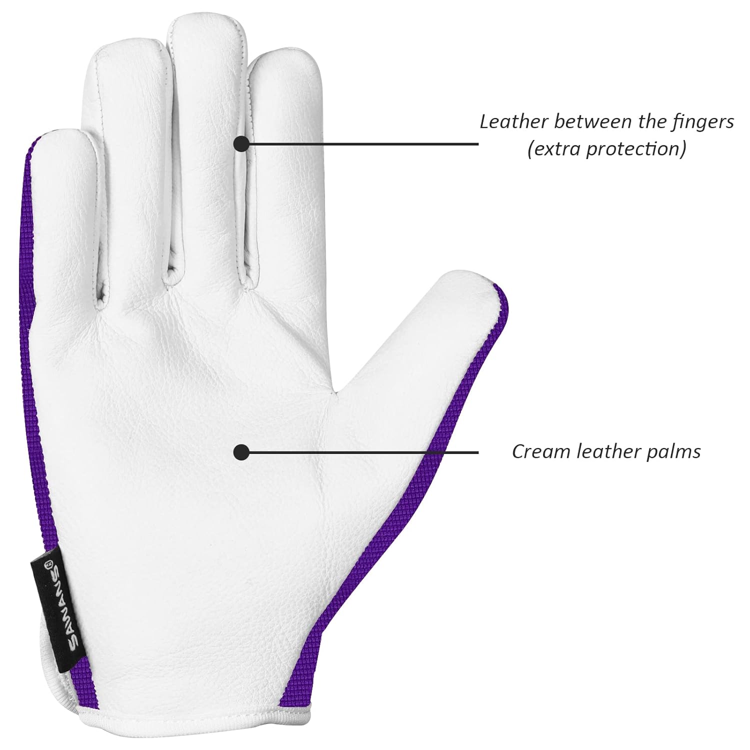 SAWANS Leather Gardening Gloves Ladies and Mens Thorn Proof Garden Gloves for Women and Men Ideal Gardening Gifts Durable Goatskin Work Gloves (M, Purple)