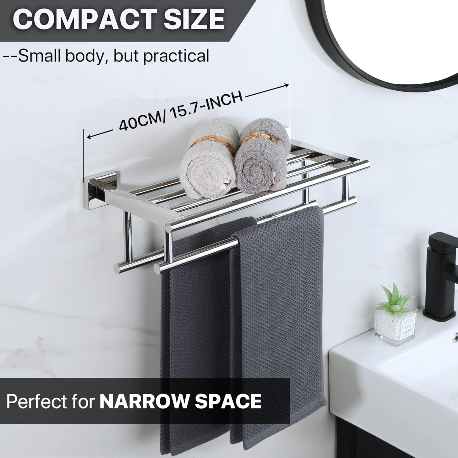 Sayayo Towel Rail Wall Mounted Chrome Bathroom Towel Shelf 16-Inch Towel Holder, SUS304 Stainless Steel Towel Rack, EGZ8040-C