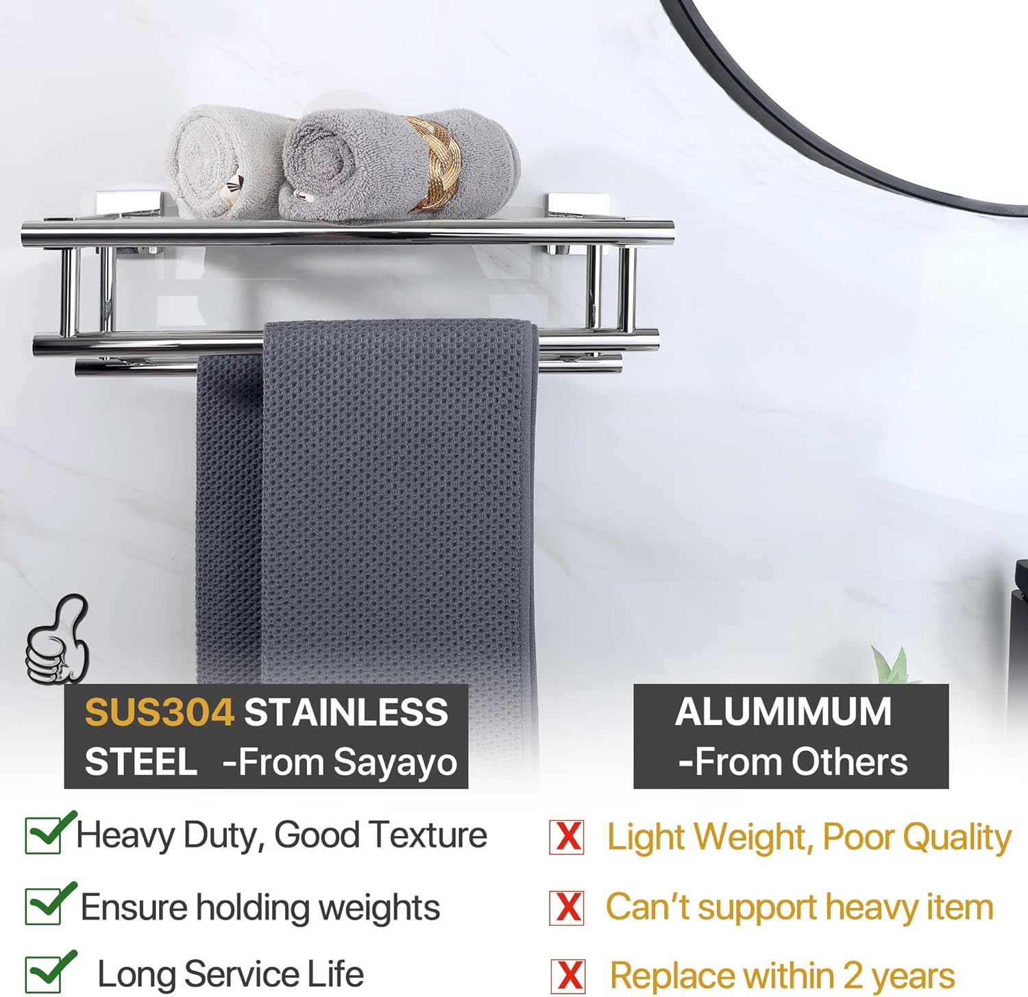 Be the first to review “Sayayo Towel Rail Wall Mounted Chrome Bathroom Towel Shelf 16-Inch Towel Holder, SUS304 Stainless Steel Towel Rack, EGZ8040-C”