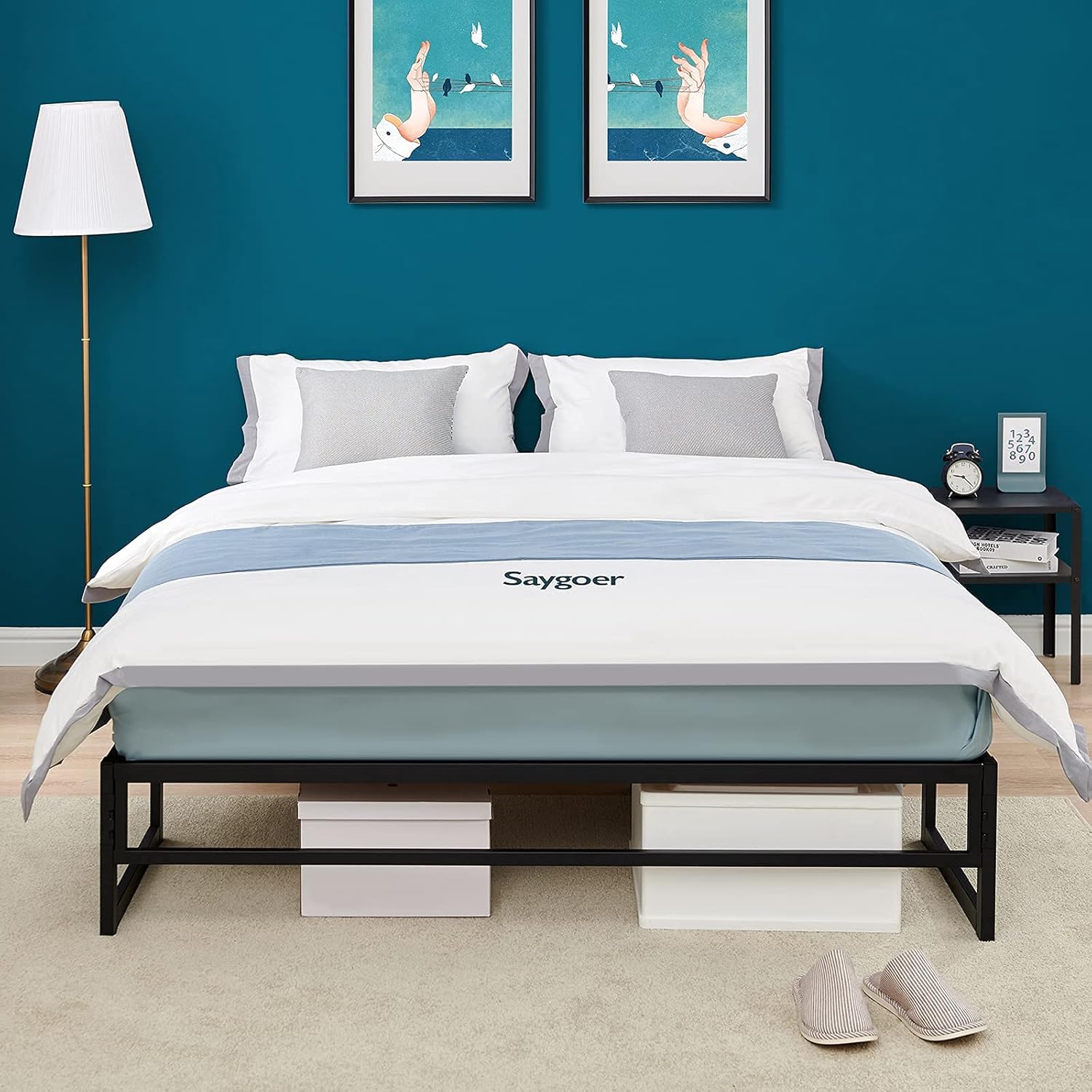 Be the first to review “SAYGOER Double Bed Frame Base 31.5cm Metal Platform Mattress Foundation Frames No Box Spring Needed Heavy Duty Steel Slat Support Underbed Storage Space Noise Free Non-Slip Easy Assembly, 191x137cm” Cancel reply