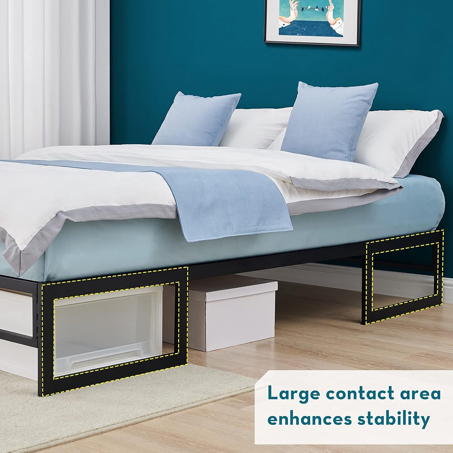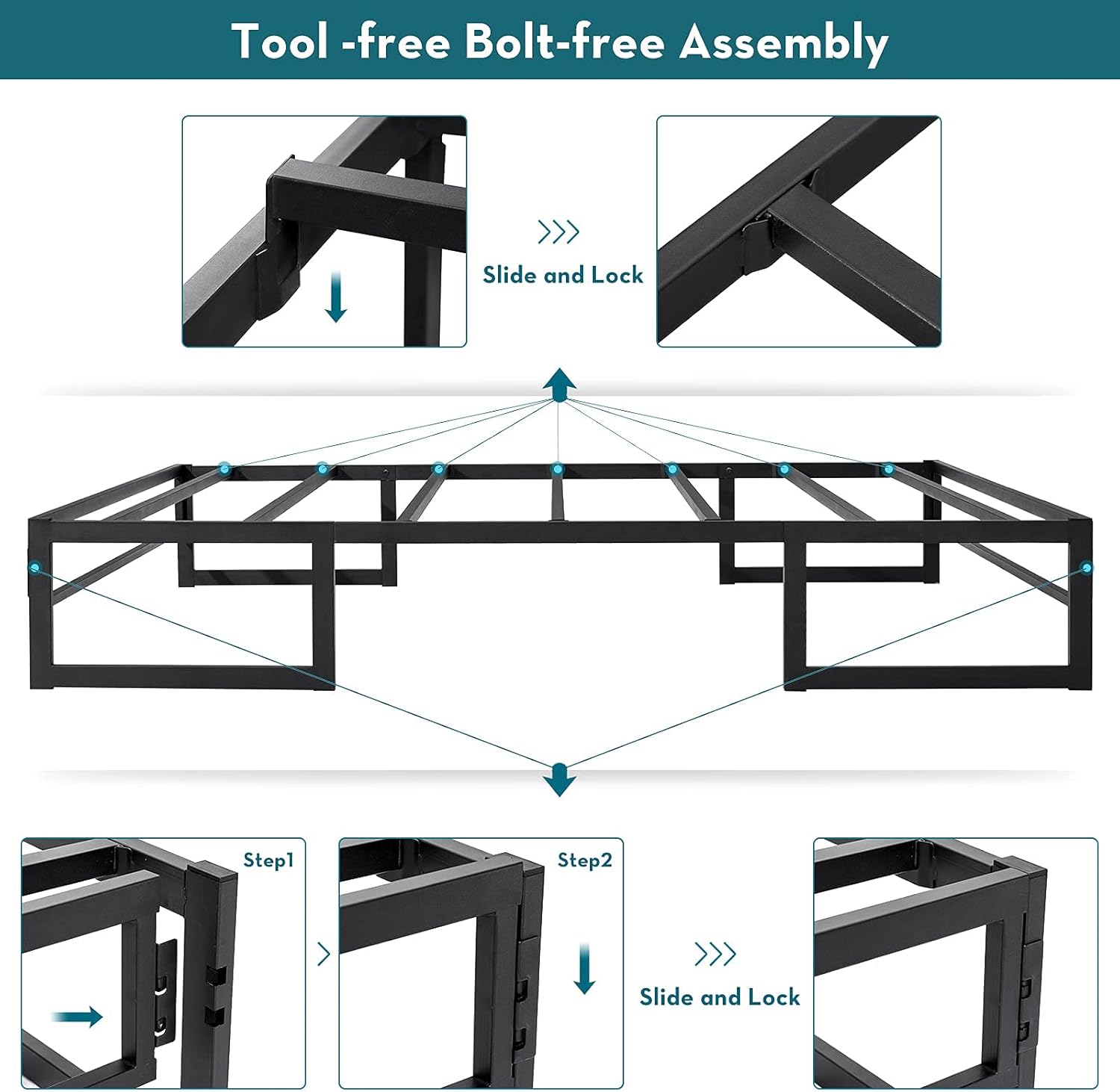 No Box Spring Needed — Built-in steel slats provide increased structural integrity compared to removable wood slat rolls. 2 bonus vertical reinforcement bands. Support any memory foam, latex, or spring mattress.