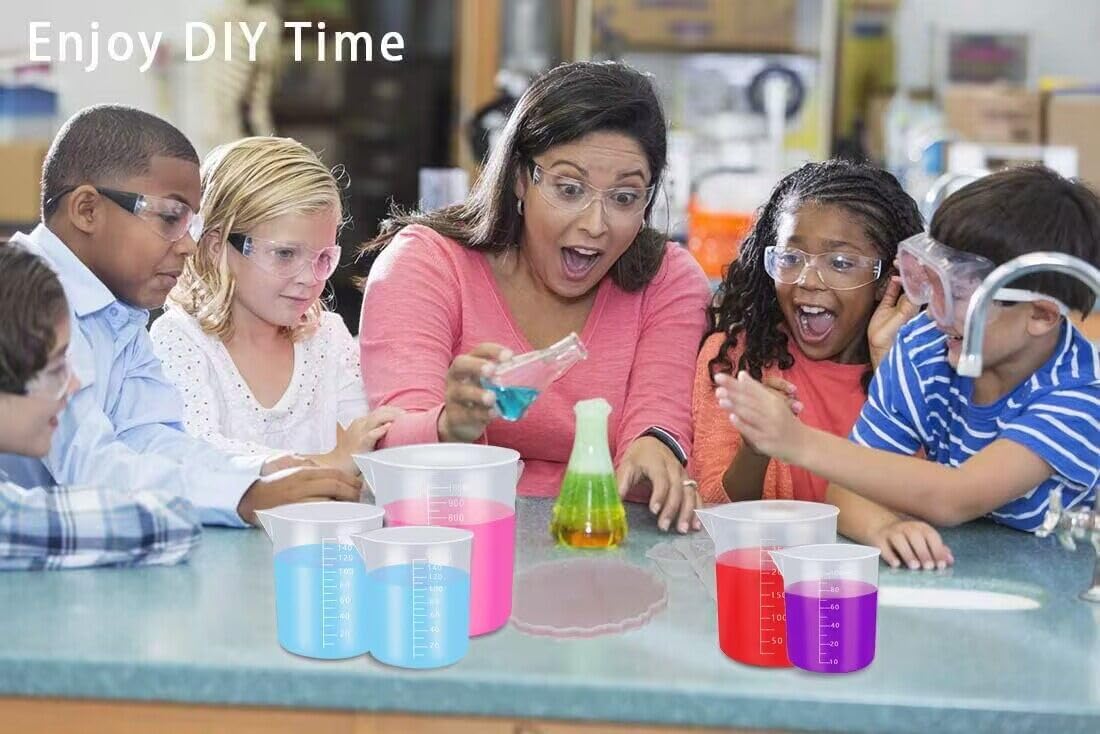 SAZTEAY Plastic Measuring Cups, 6Pcs Plastic Measuring Jugs Set Transparent Lab Graduated Beakers, Multipurpose Liquid Paint Mixing Cups for Kids