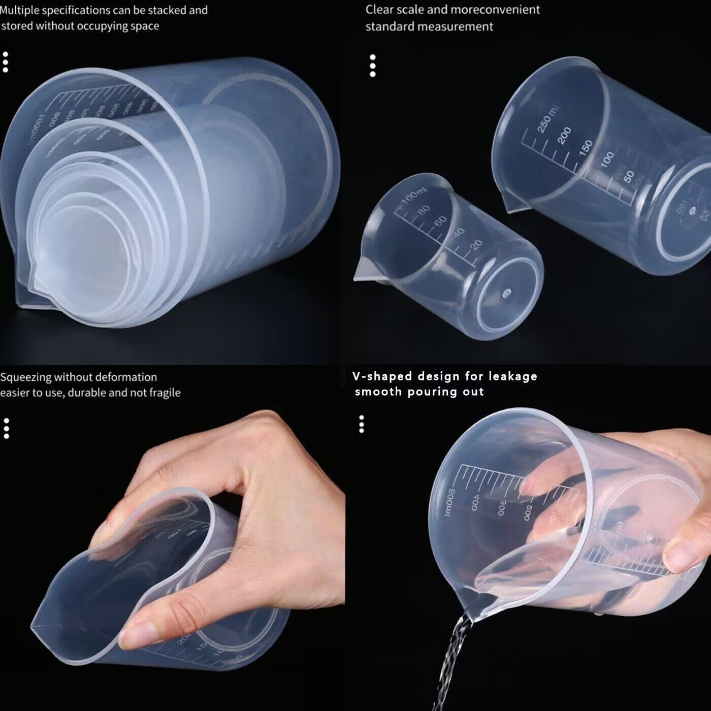 【6PCS Plastic Jug Set】 Come with 6 plastic measuring cups, and SAZTEAY measuring beakers can be stacked to save space. Our measuring jugs plastic set is perfect for measuring, pouring and mixing small batches of casting resin, paint, acrylic, stain or other DIY project.
