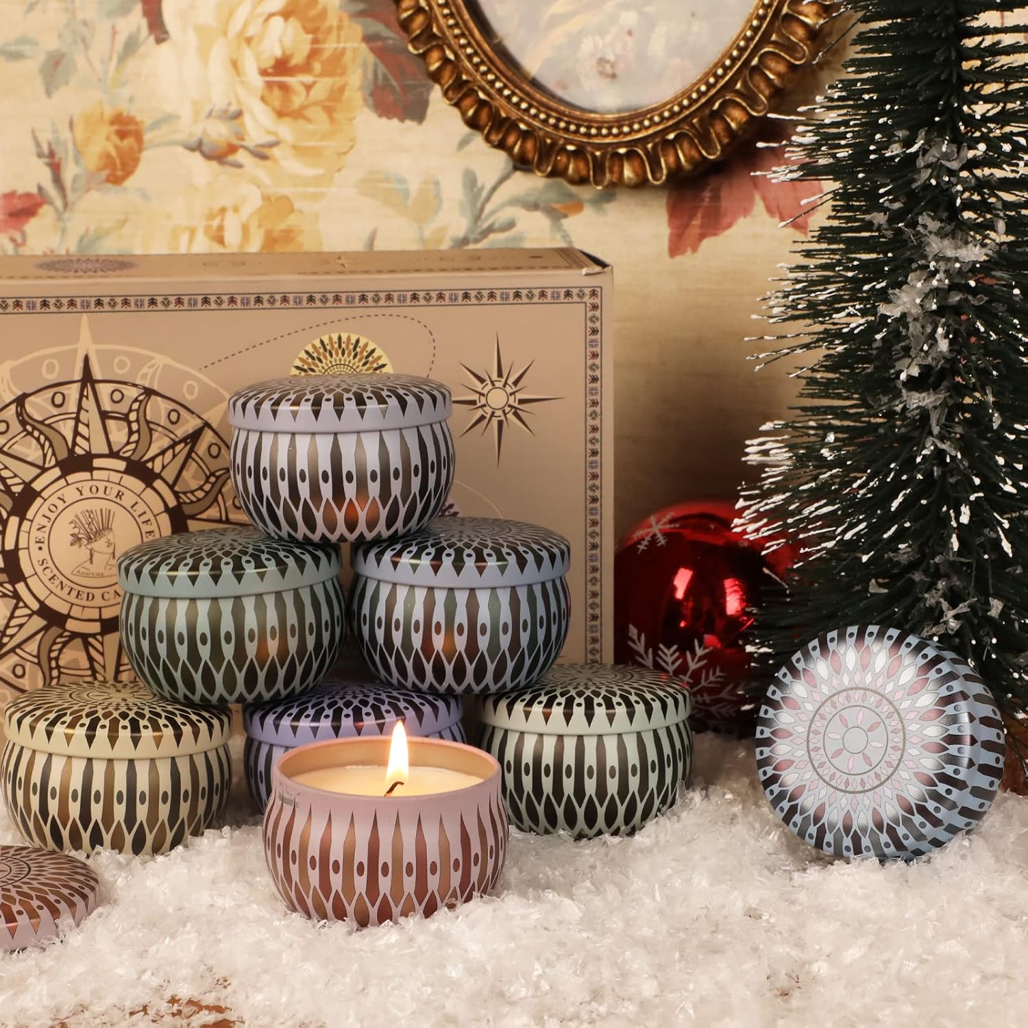 Stylish tins, reusable containers with beautiful pattern to add decoration to your room table. Gift idea, the candles set packaged with a luxury gift box, it’s an ideal gift to mother, wife, sister, friends for birthday, mother’s day, valentine’s day.