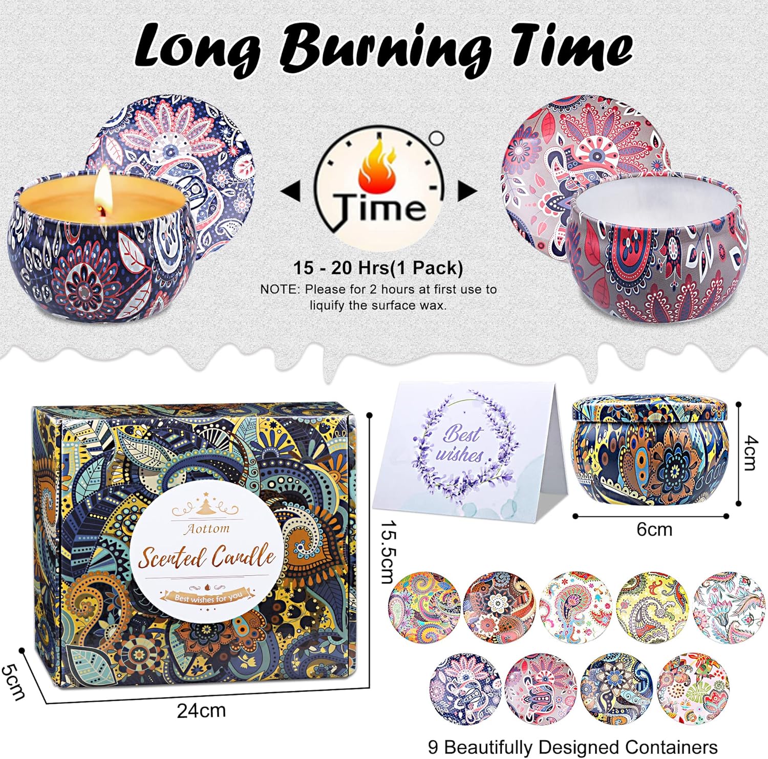 The scented candle gift set contains 9 scented candles in 9 scents: