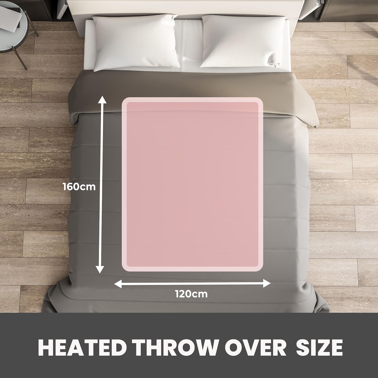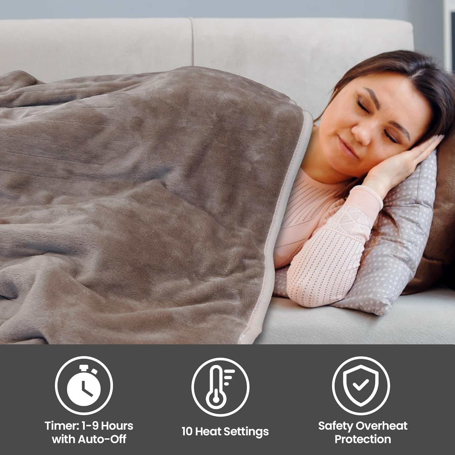 Schallen 120x160cm Soft Heated Warm Throw Over Blanket with Timer and 10 Heat Settings (Mink Beige)