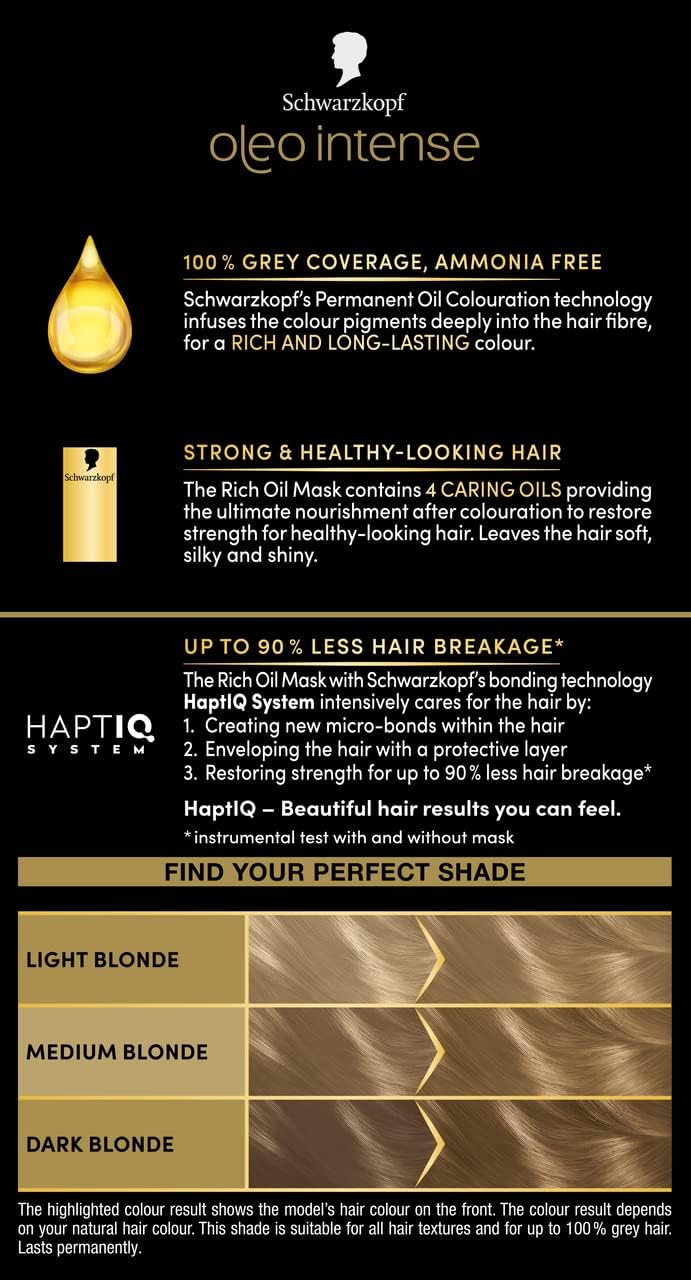 Schwarzkopf Oleo Intense Permanent Oil Colour Hair Dye, 100% Grey Coverage, Conditioner with HaptIQ System, Long-Lasting Colour, Ammonia Free Hair Dye – 15 Shades to Choose From