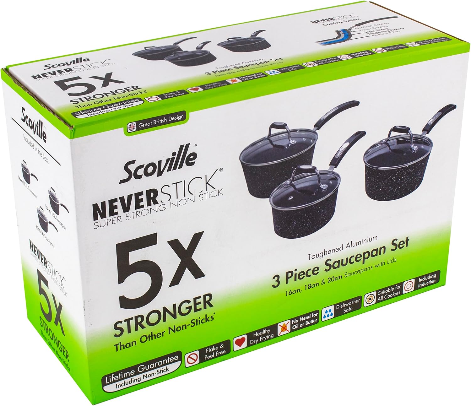 Scoville NEVERSTICK 3pcs Saucepan Set with Lids, Non Stick Saucepan