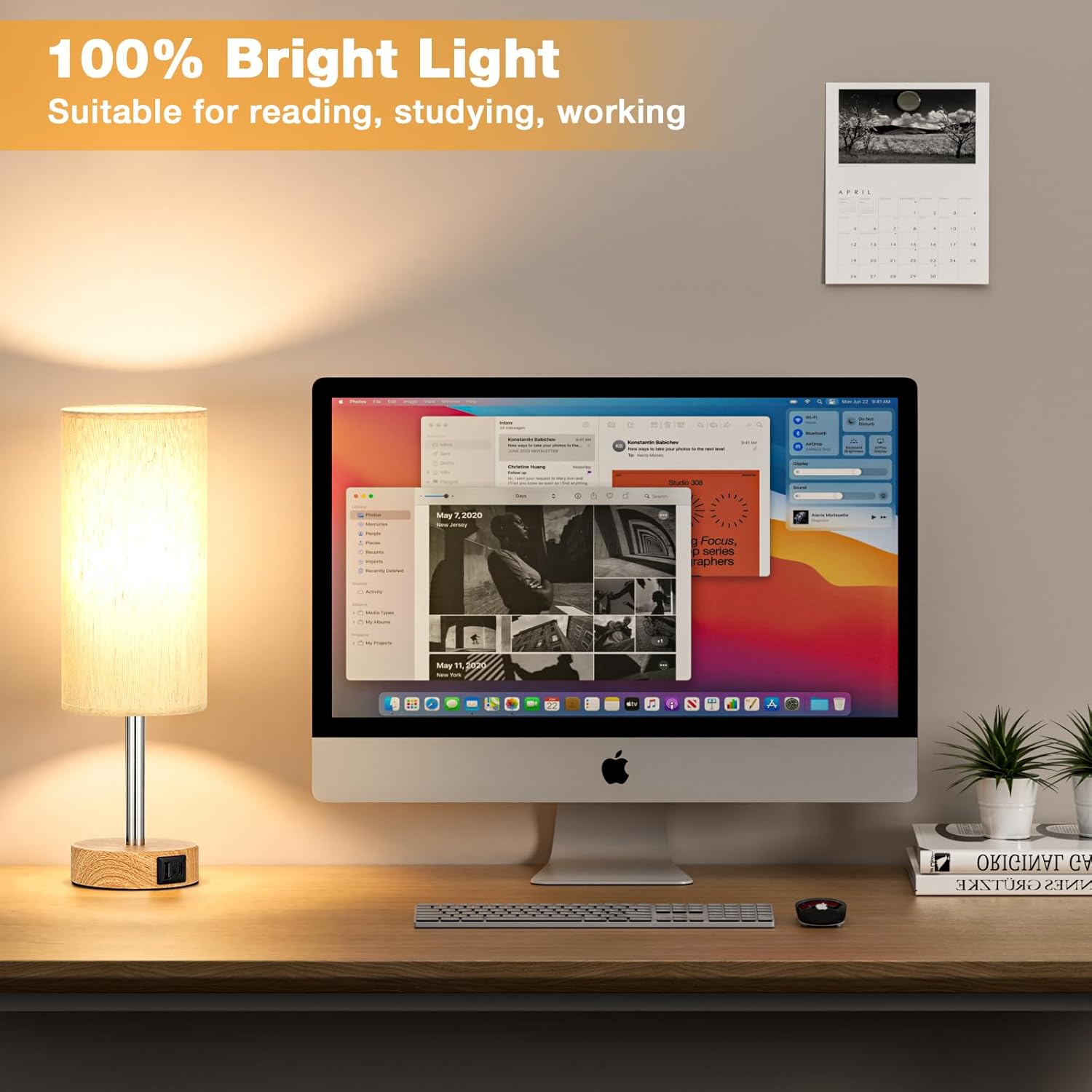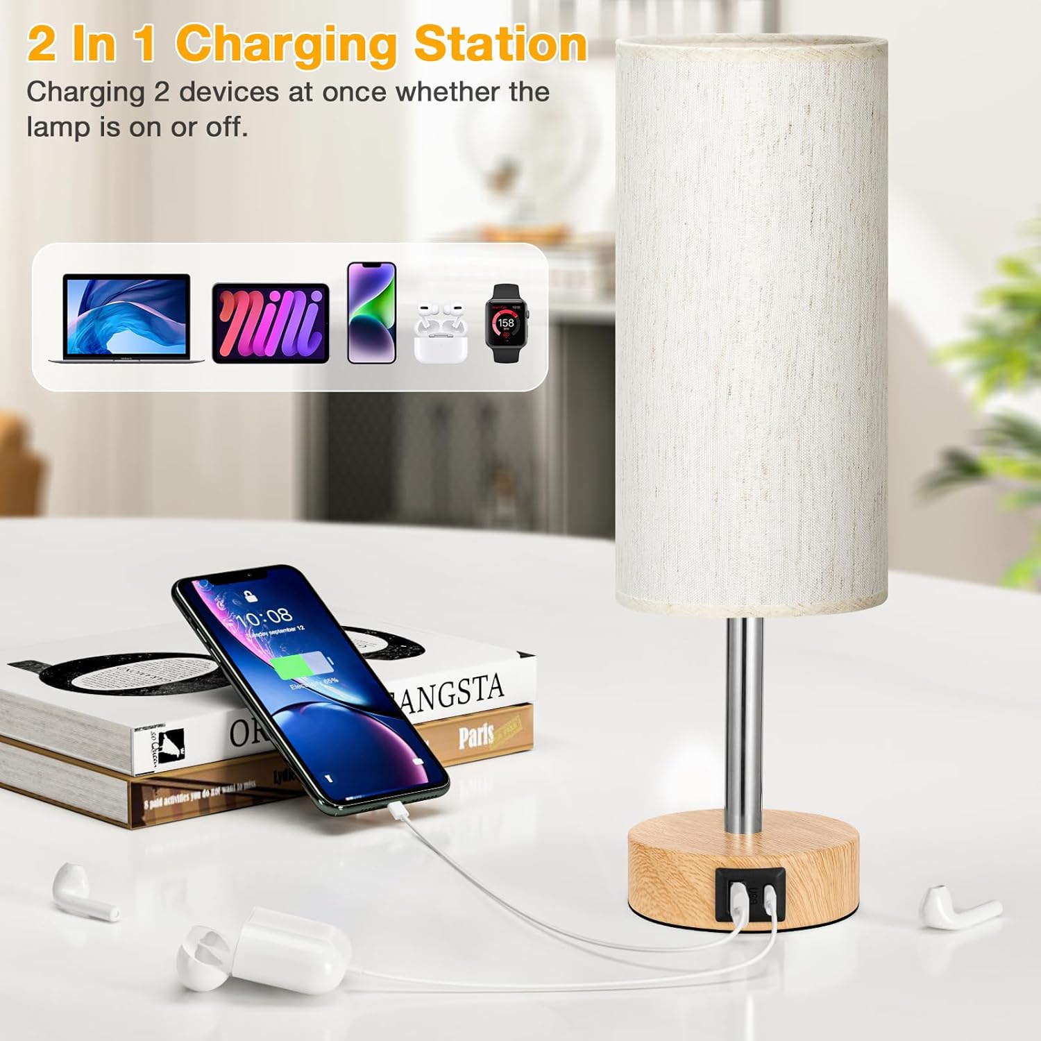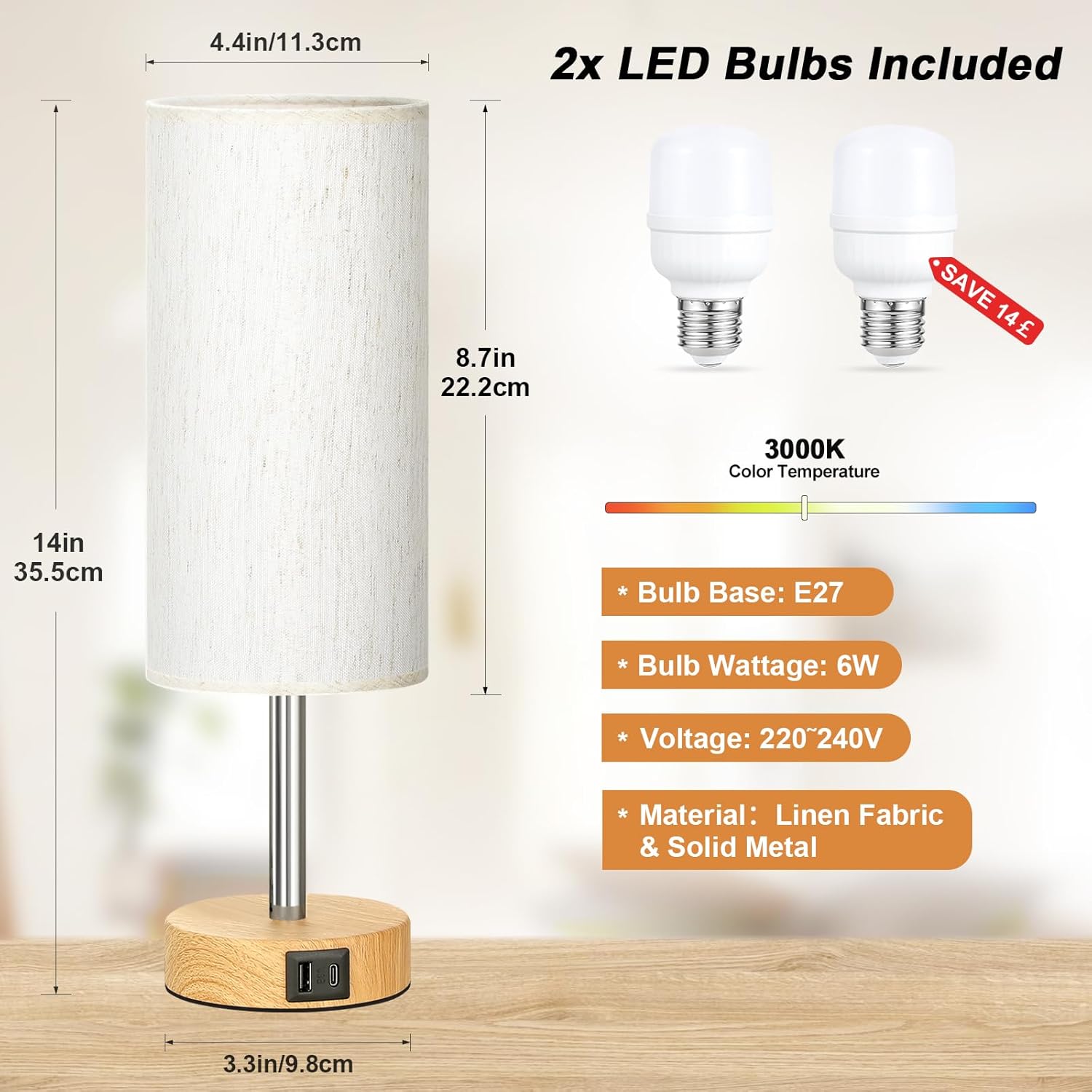 【Minimalist Design for Home】This small bedside lamp has a minimalist design with a flaxen linen shade and classic wood grain base, it is very suitable to decorate anywhere in your home. A perfect usb lamp for bedroom, living room, study room, kids room, nursery, office, dorm and so on.