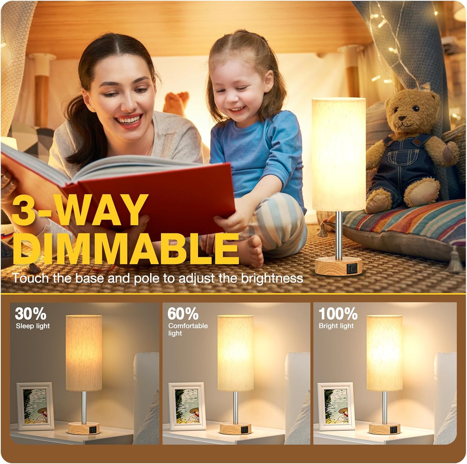 【3-Way Dimmable Bedside Lamp】Simply tap the base or light pole to easily change the brightness! The bedside touch lamp offers 3 level brightness options. (30%, 60% and 100%). 30% night light lamp for sleeping; 60% comfort lighting for browsing the phone; 100% bright lighting for reading or working.