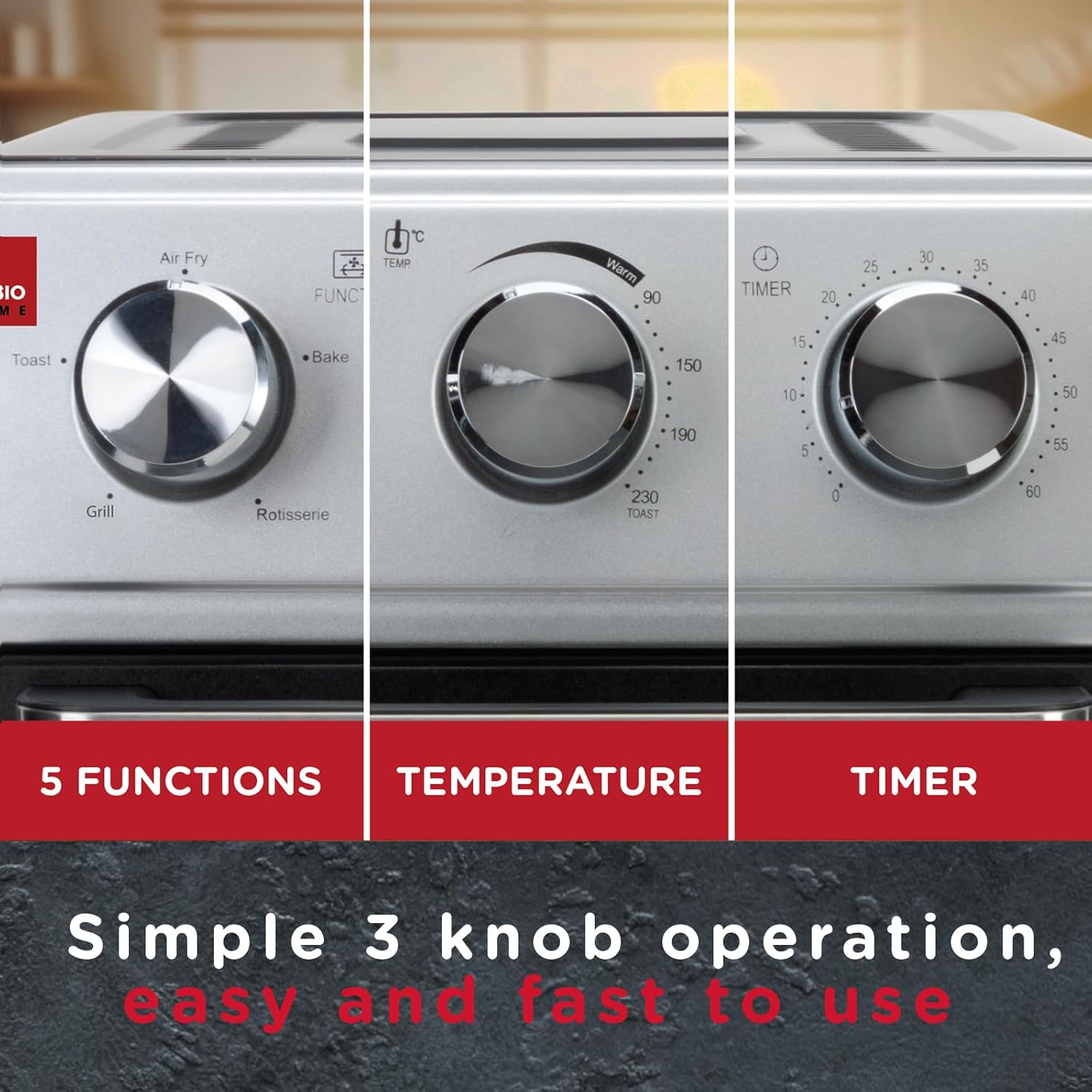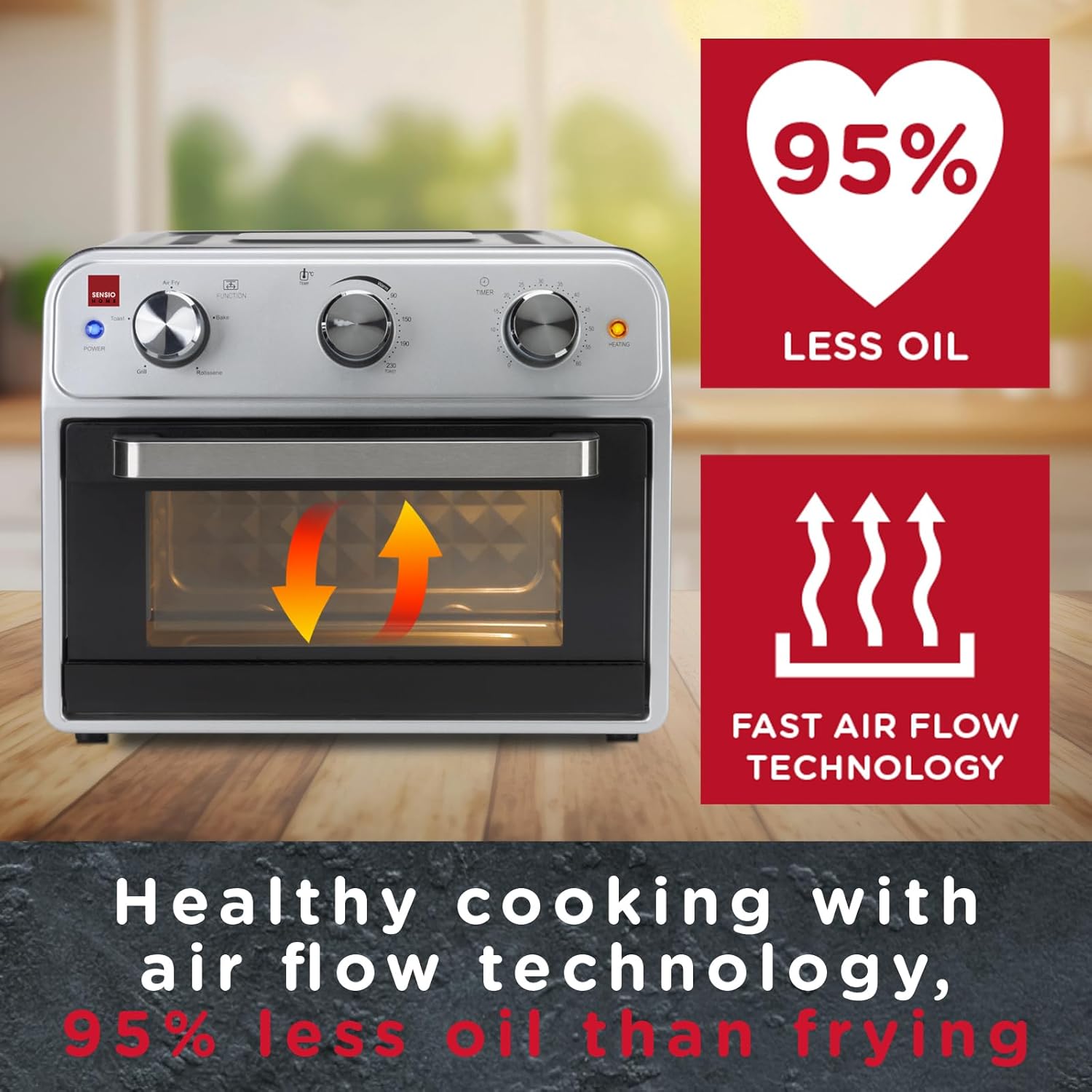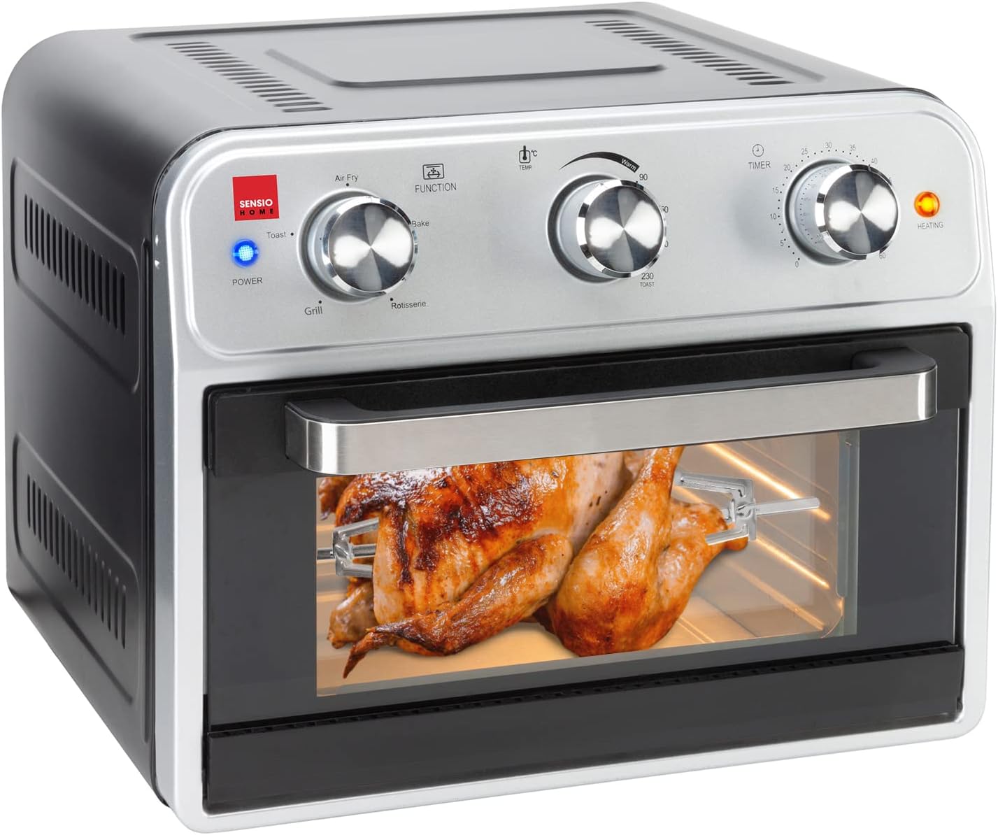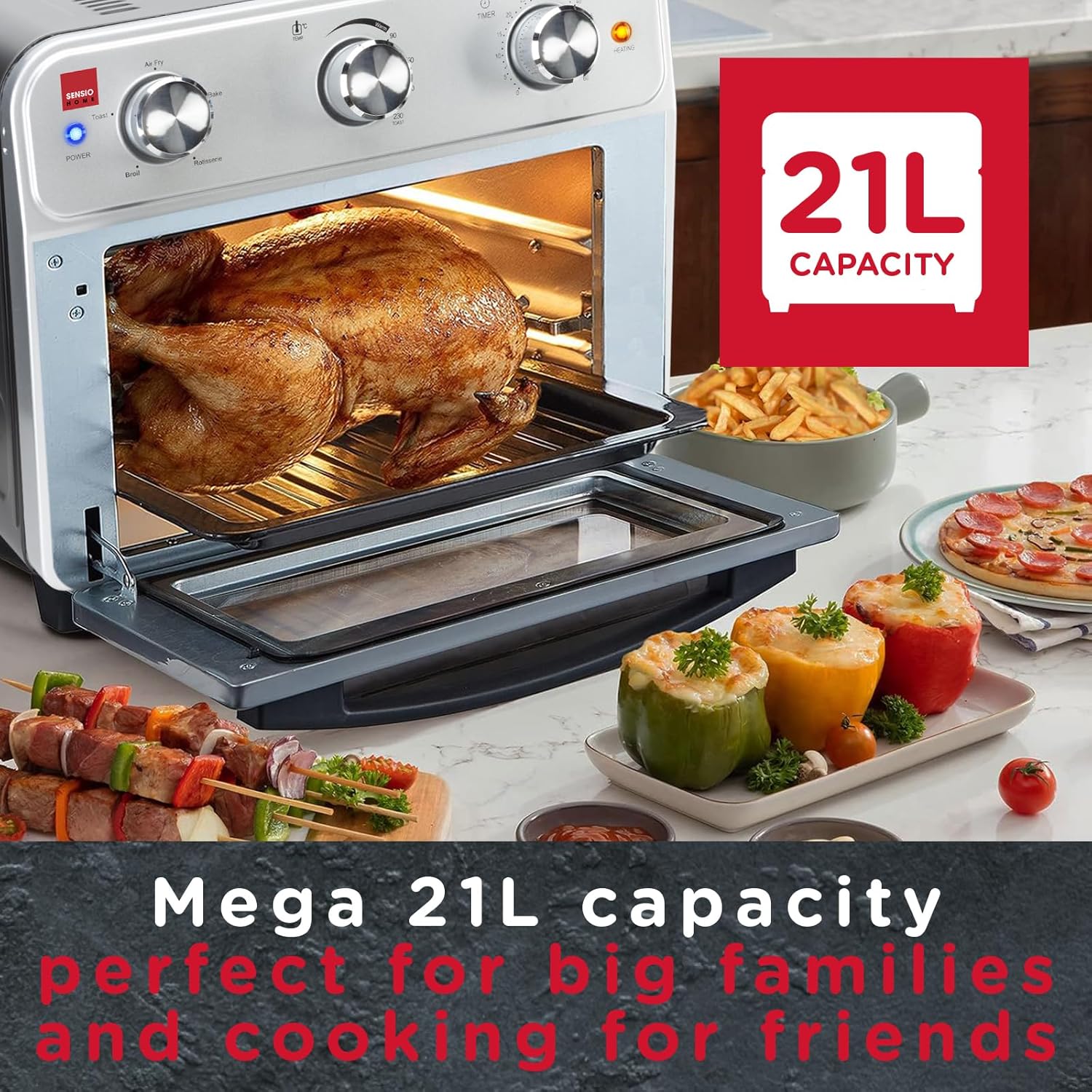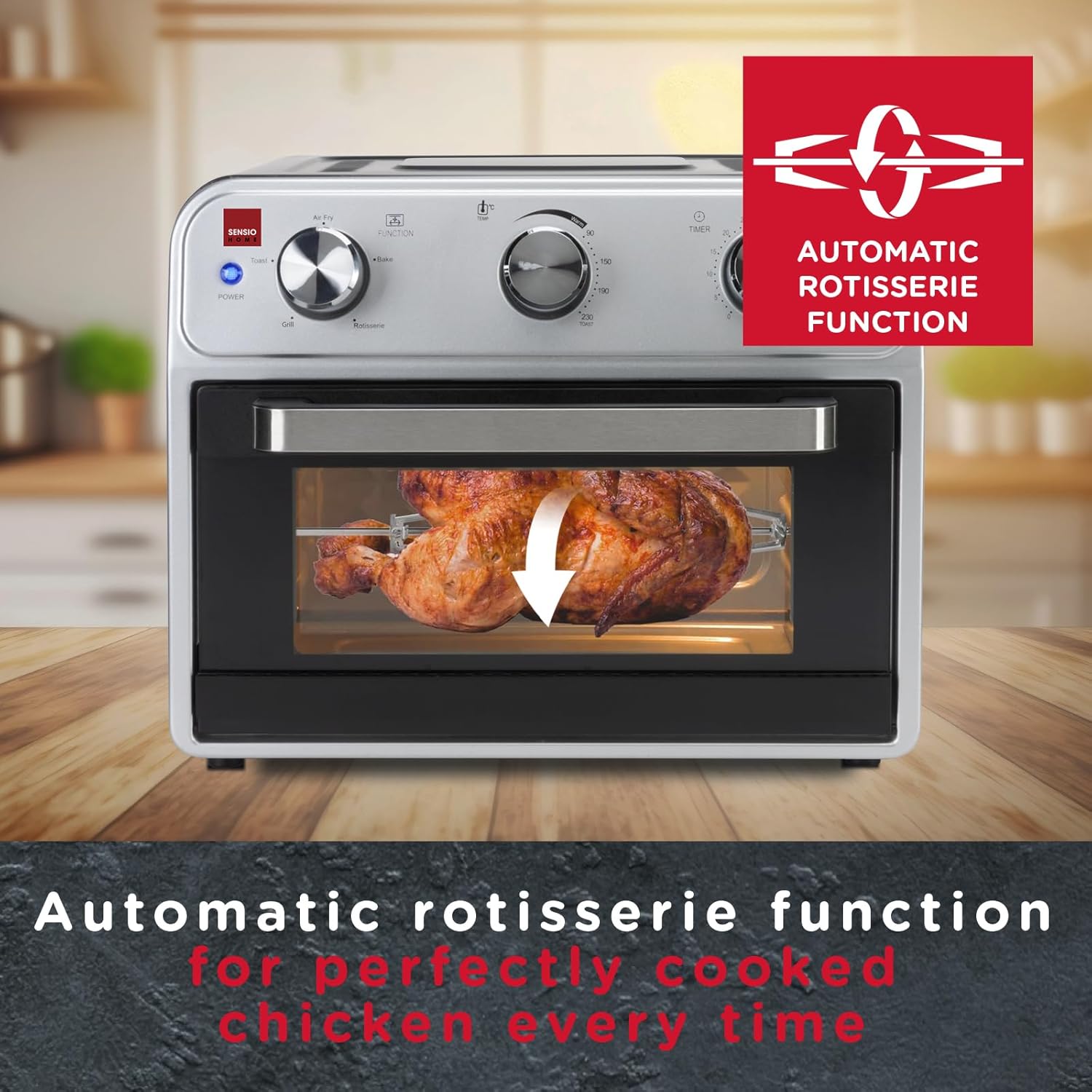 Sensio Home Mega 21L Capacity Air Fryer Oven, Family Size Healthy Cooking, 1800W Multifunctional, Rotisserie Bake Broil Toast Timer, Oil Free Cooking, Full Accessory Set, Stainless Steel Finish