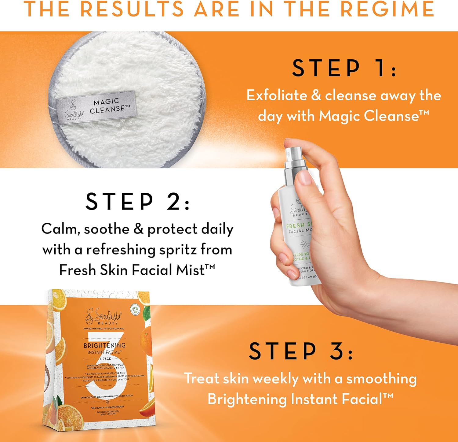 Seoulista Beauty® Brightening Instant Facial™ 30ml | Treatment Face Sheet Mask for Dry Skin Dark Spots and Pigmentation | Dermatologist Created Korean Skin Care | Infused with Vitamin C & AHAs