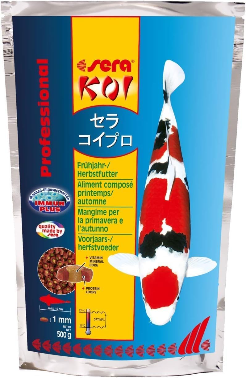 (as of [price_update_date] – DetailsBelow 17°C (63°F), the metabolism of the fish is not fully effective any more. The food must therefore be particularly easy to digest. This is the only way Koi can prepare for winter or start into the year in spring. sera KOI Professional Spring/Autumn Food considers the special nutritional requirements of Koi and other pond fish at temperatures below 17°C (63°F). The unique sera process of co-extrusion allows combining differently treated ingredients. The ring contains ingredients that are particularly easy to digest and relieve metabolism. The core consists, among others, of essential vitamins, minerals and trace elements for healthy growth and a strong immune system. Additional vitamin C furthermore strengthens disease resistance and reduces sensitivity against diseases.