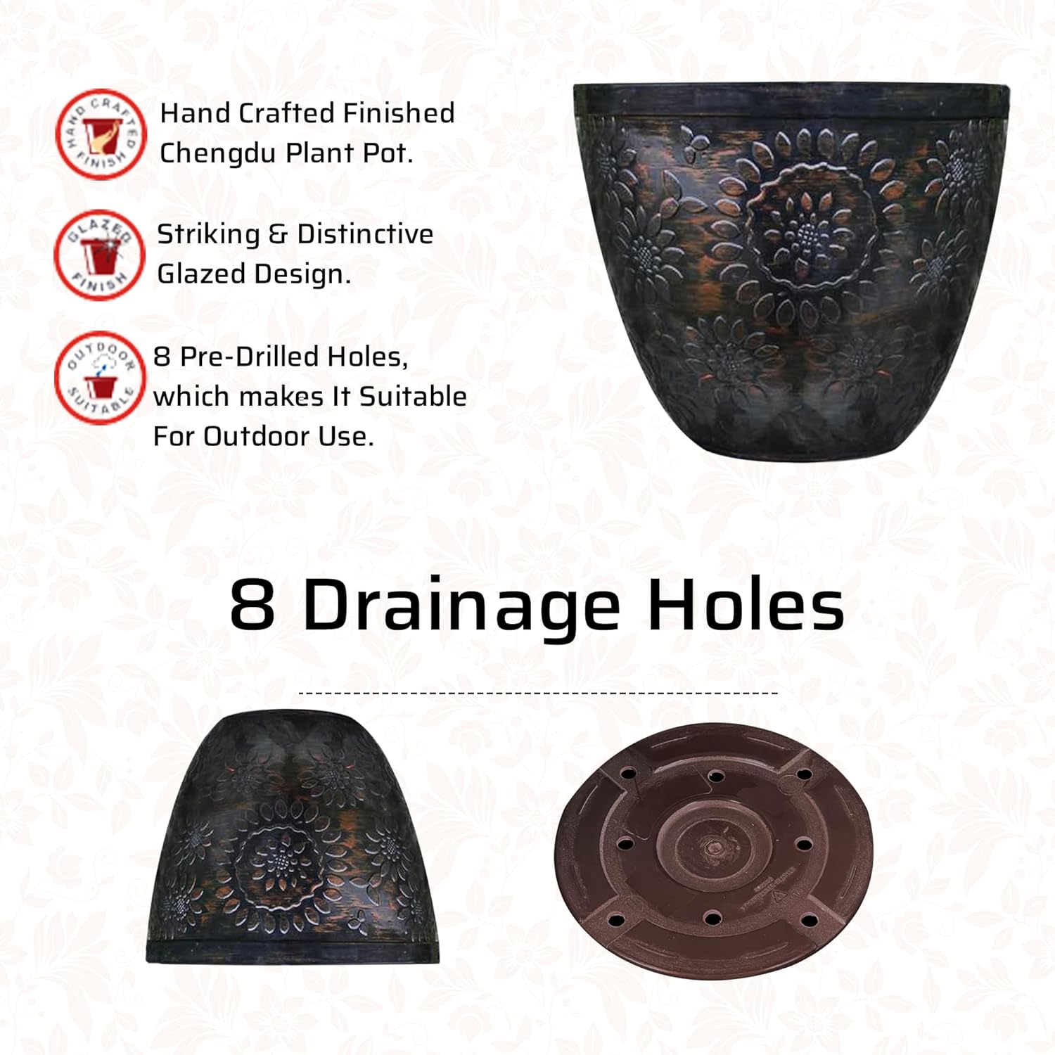CHENGDU VARIETY: SG Traders has variety of outdoor plant pot, outdoor pots and garden planters to enhance your outdoor living space. From traditional pots to modern flower pots outside, we have a wide selection of planters to suit any style. Our plant pots and garden planters are perfect for showcasing your outdoor plants that making it easy to find the perfect planters outdoor to suit your needs. Add SG Traders high quality plant pots in your garden.