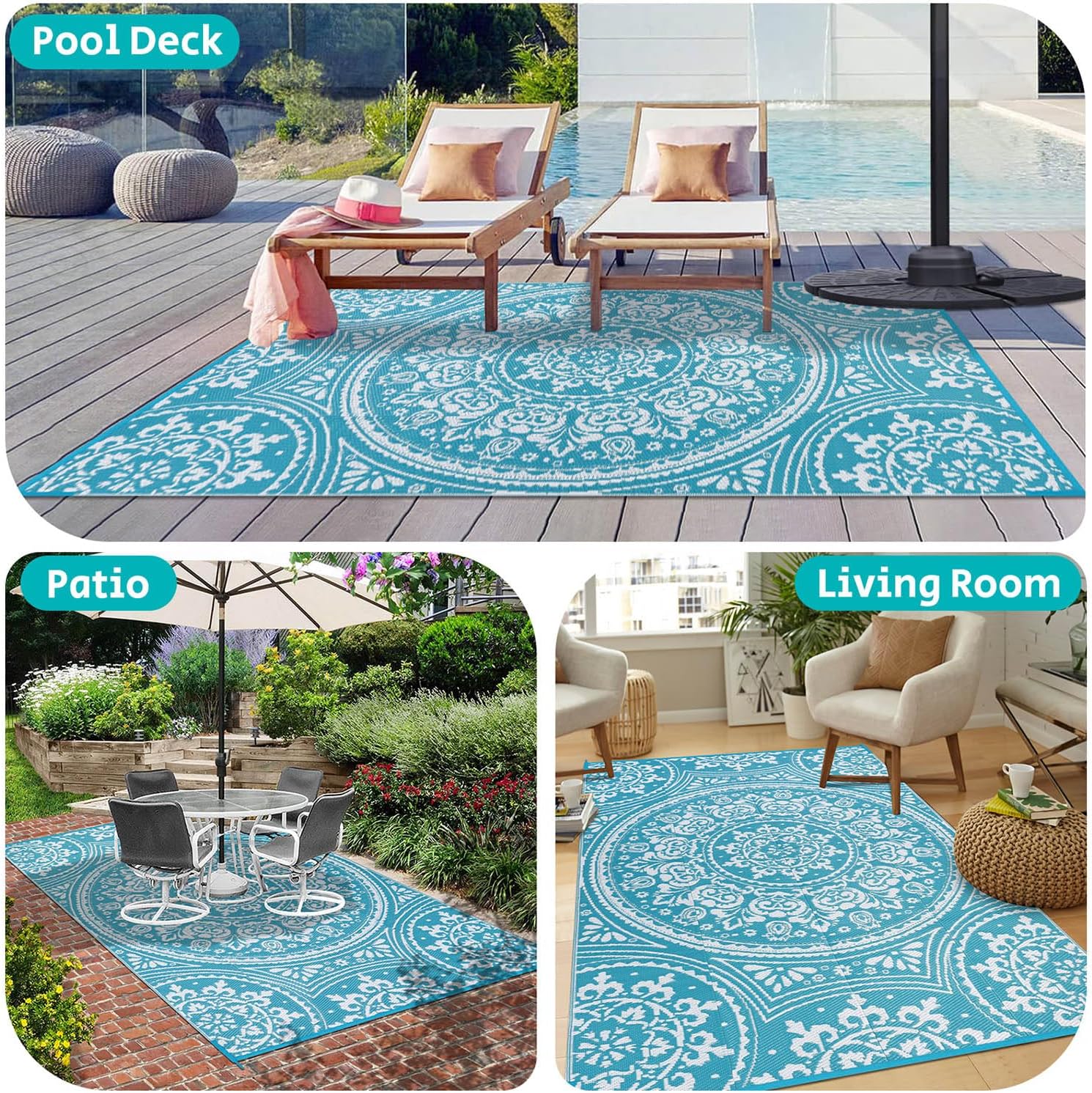 [Reversible Rug]: Featuring a chic floral pattern design, with different color combinations on both sides, this patio rug adds a modern and unique atmosphere to your space and also brings the feeling of an outdoor living room, making it perfect for courtyards, decks or outings.