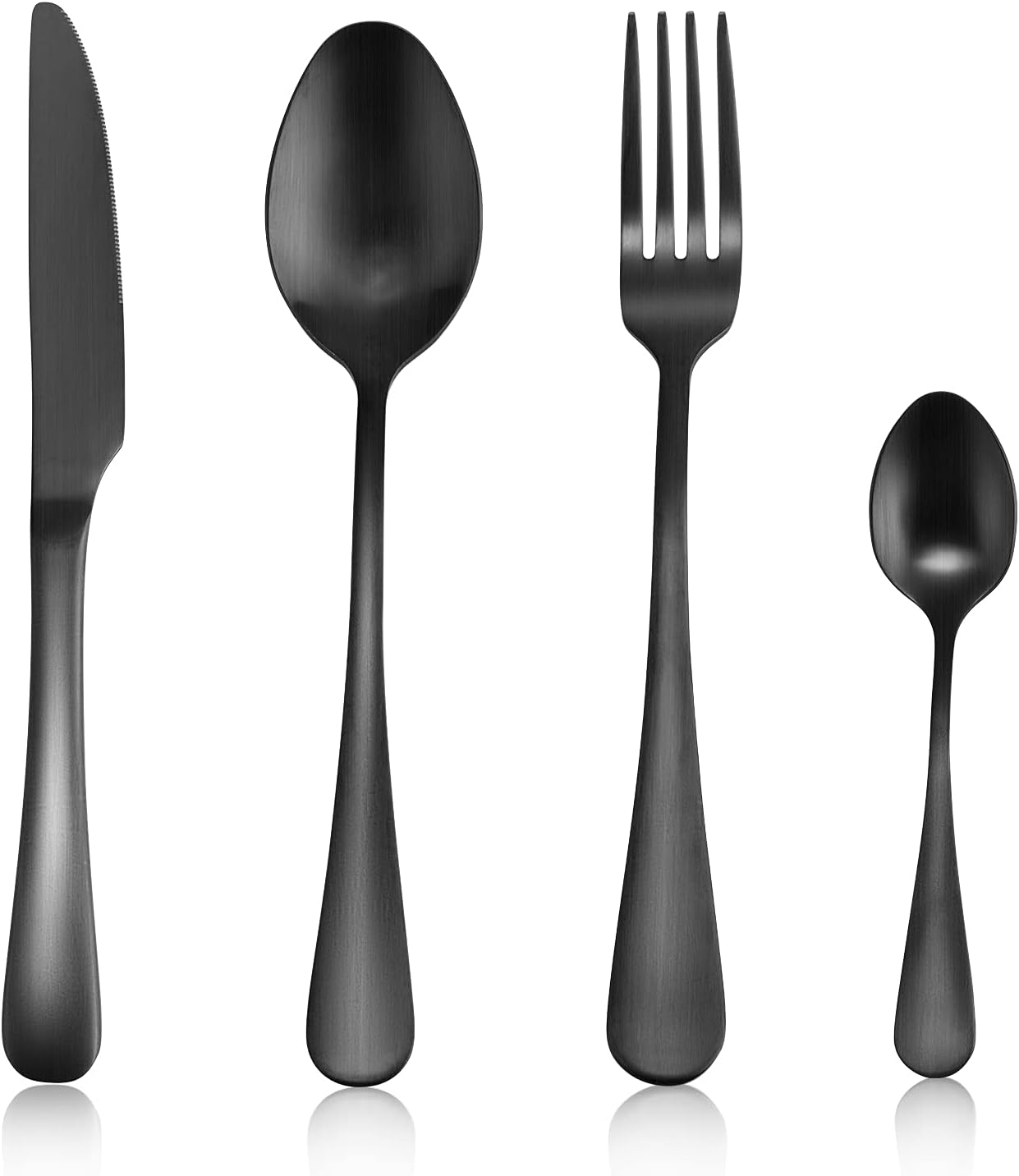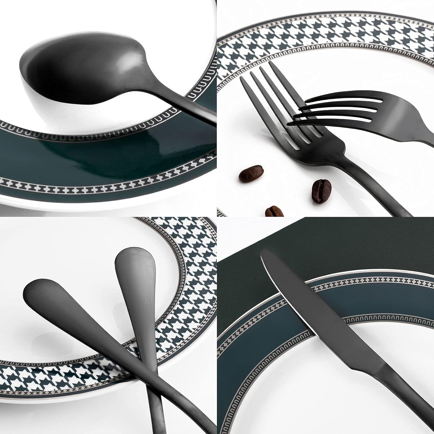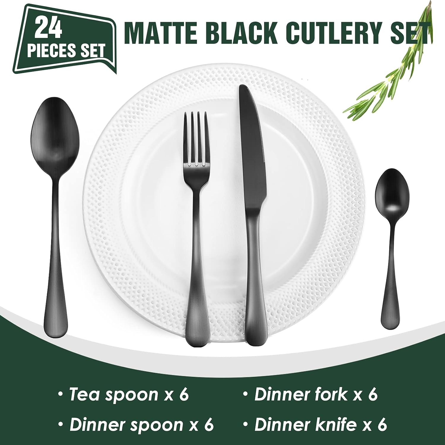 【DISHWASHER SAFE】- This matte black cutlery 24 piece set is dishwasher safe,it is convenient to wash or storage,your appropriate care during use of your black silverware set will keep it as good as new for many years.