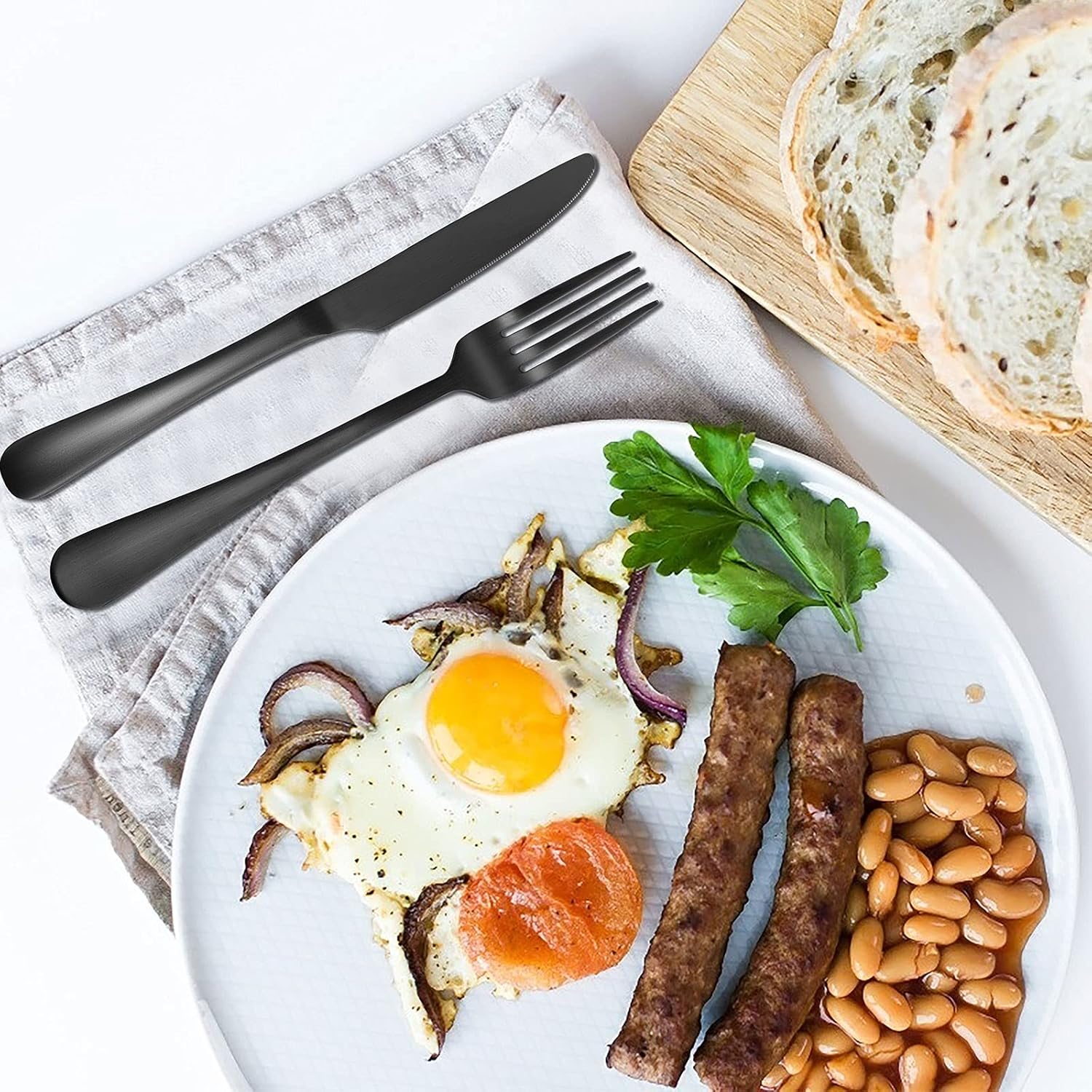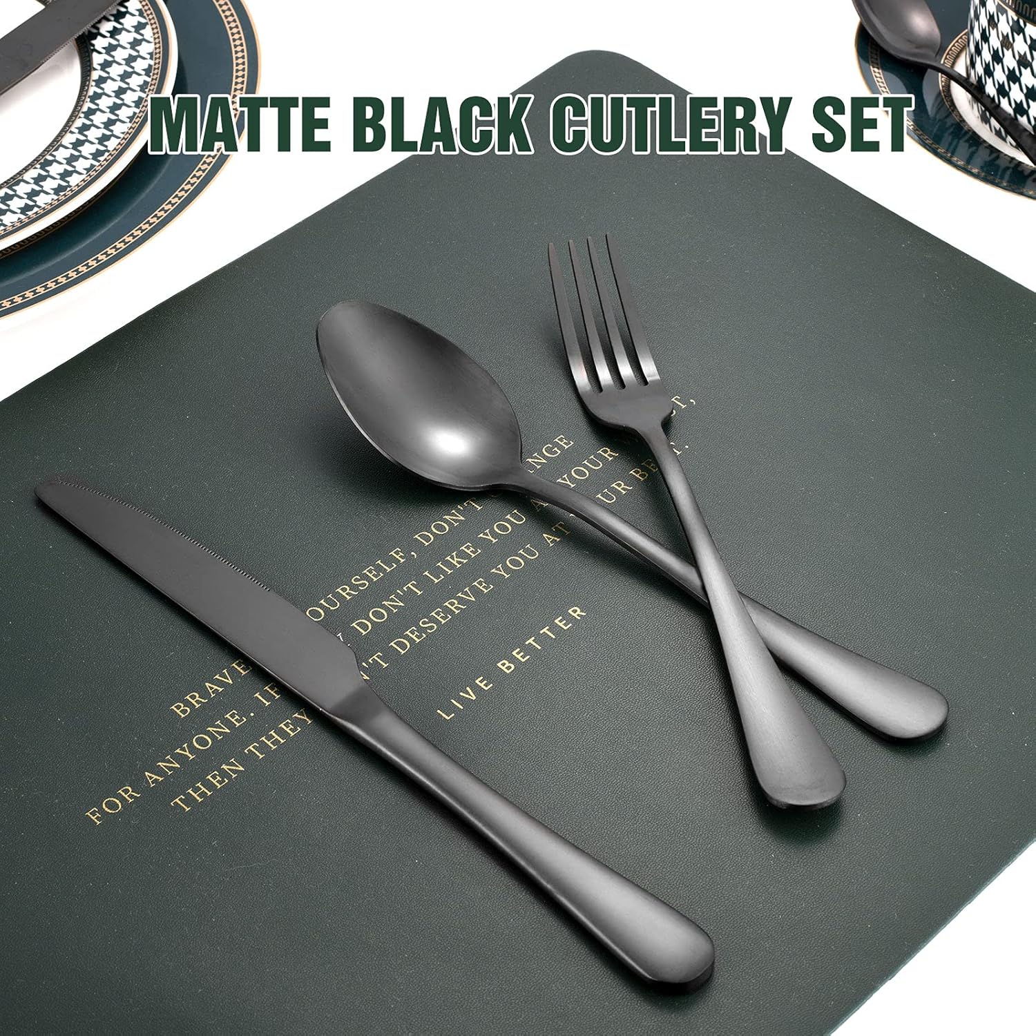 【HIGH QUALITY】-The matte black cutlery set is made of high quality stainless steel material,non-poisonous for your health,not easy to bend or scratch,it is rust resistance and durable strength.