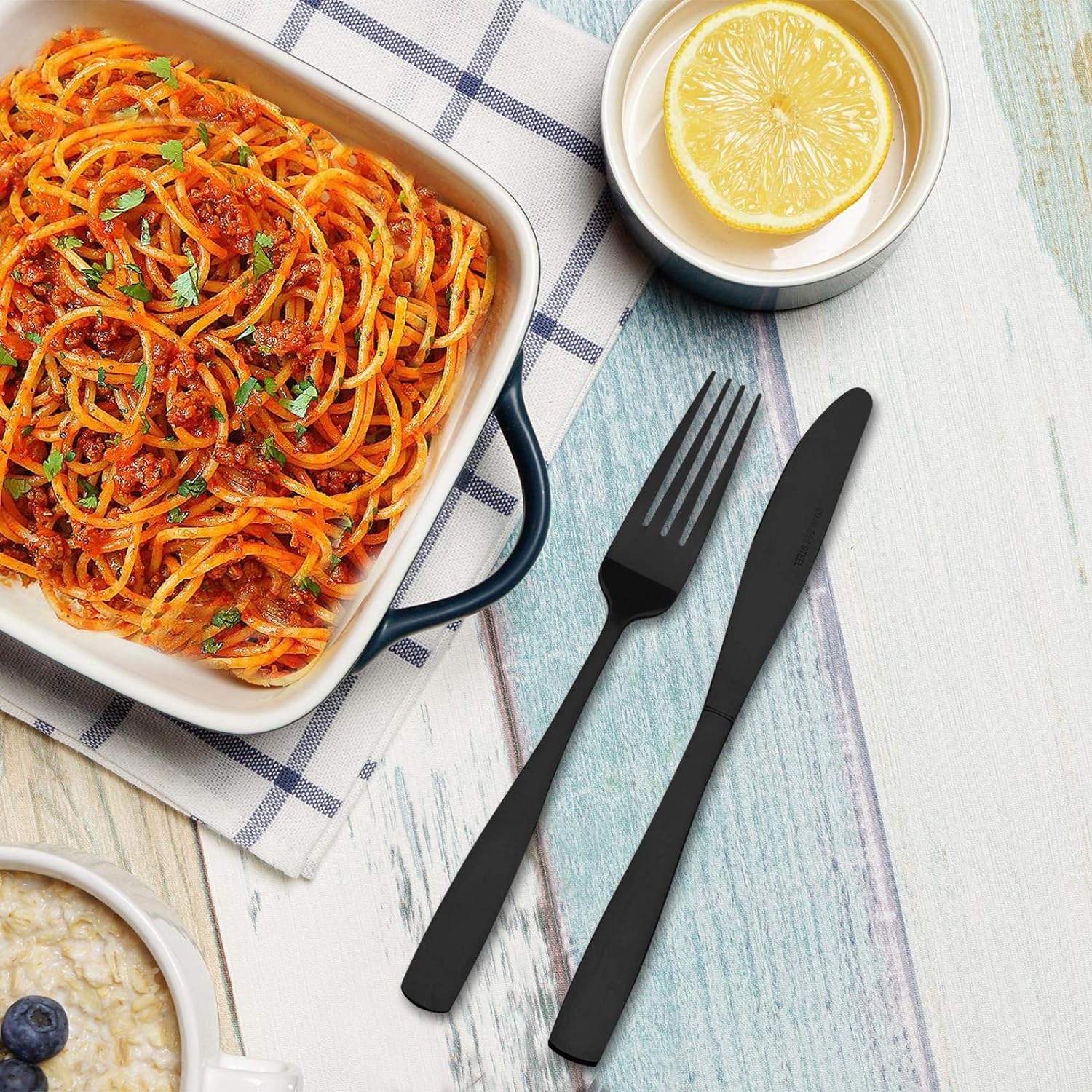 【Matte Black Cutlery Set】 The design of matte cutlery has more texture,modern appearance, durable and color-fast.Suitable for home use, family gatherings, parties, outdoor camping, picnic, etc.