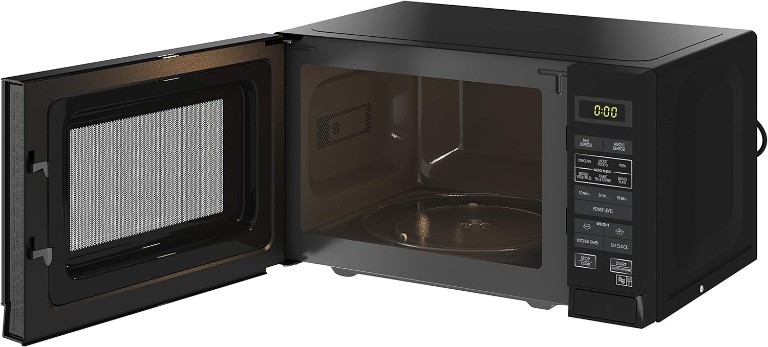 We needed a new microwave after the previous one started making concerning noises. This one is average, quite simple but does the job. The user interface is easy to navigate, it took a little fiddling to set the clock but once done it was working well. I find cleaning this microwave not as easy as I hoped, especially the top part is hard to thoroughly clean which I think is due to the texture of the material used, it seems porous so any food splash or stain is firmly stuck there. The button to open the door is a little too loud for my linking and occasionally gets locked but the microwave is sufficiently functional for our needs