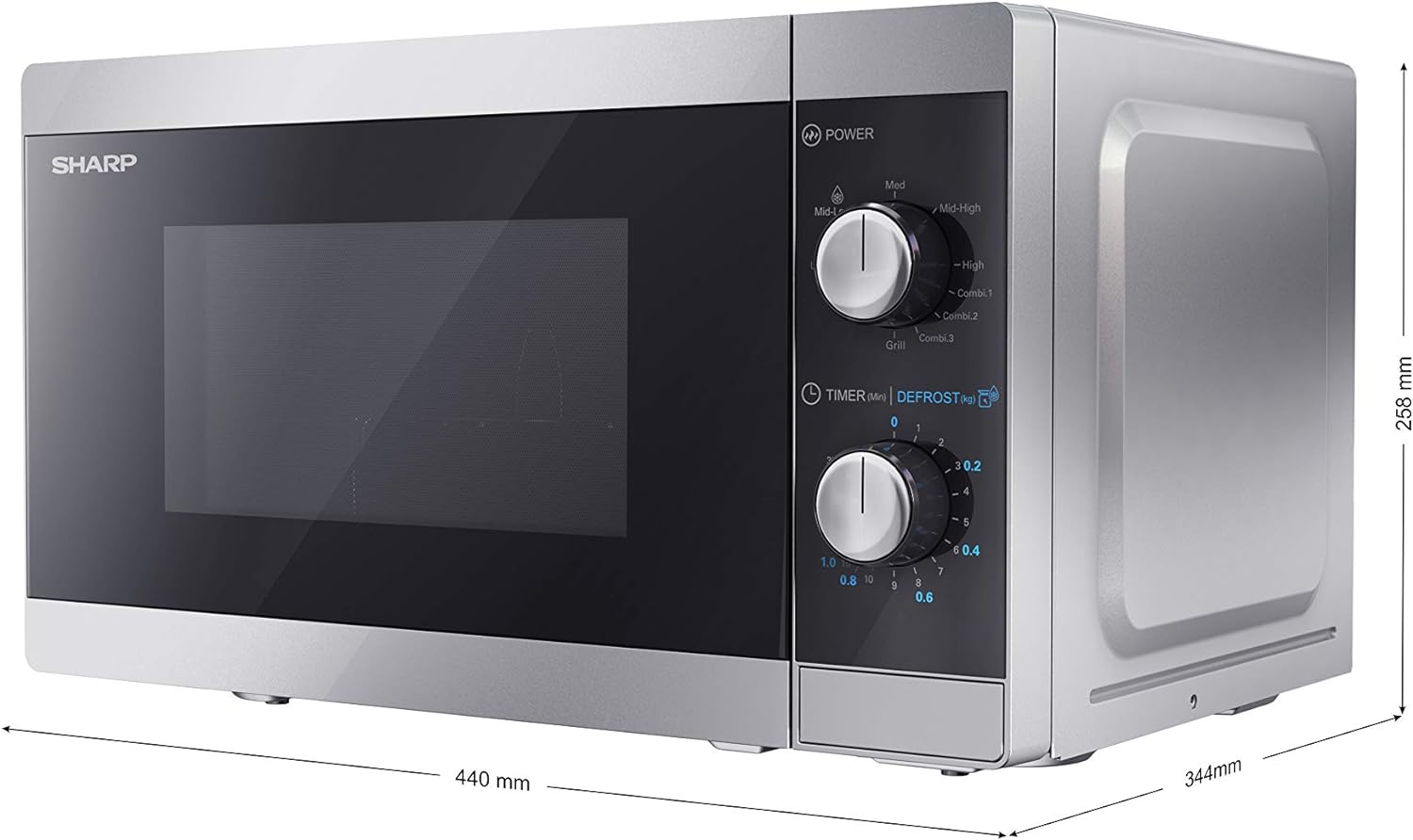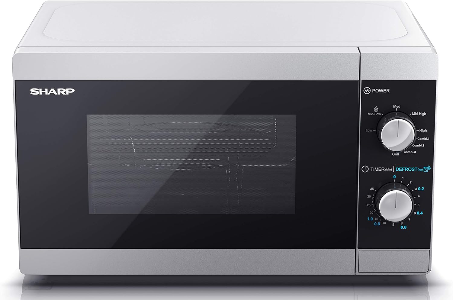 SHARP YC-MG01U-S Compact 20 Litre 800W Manual control Microwave with 1000W Grill, 5 power levels, defrost function, LED cavity light – Silver