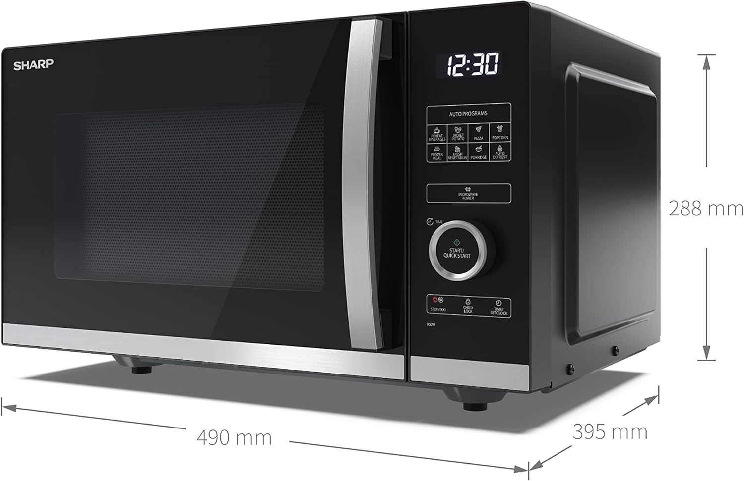 SHARP YC-QS254AU-B 25 Litre 900W Digital FLATBED Microwave, 10 power levels, ECO Mode, defrost function, LED cavity light – Black