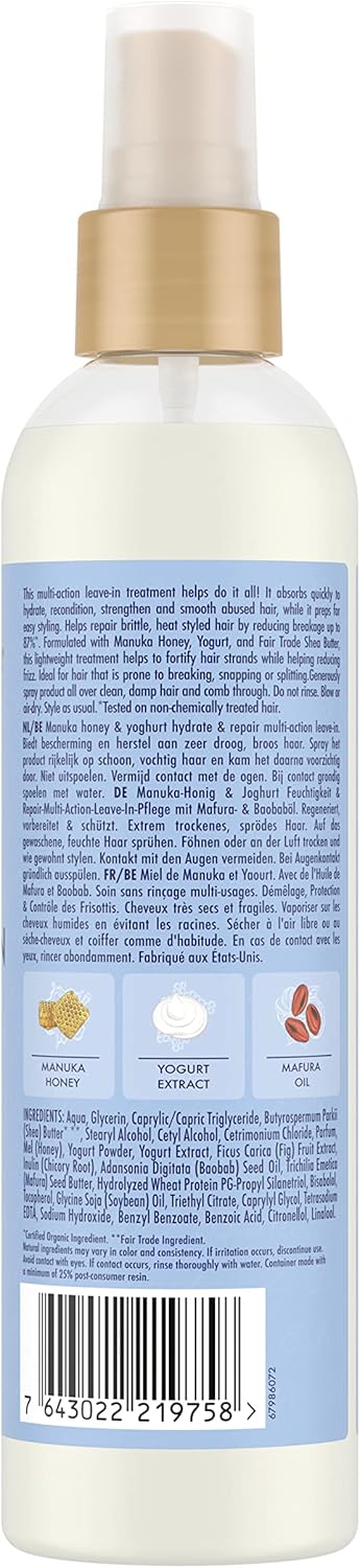 SHEA MOISTURE Manuka Honey & Yoghurt Hydrate & Repair Multi-Action Leave-In Conditioner sulphate and silicone free conditioner for extremely dry, brittle curly hair 237 ml