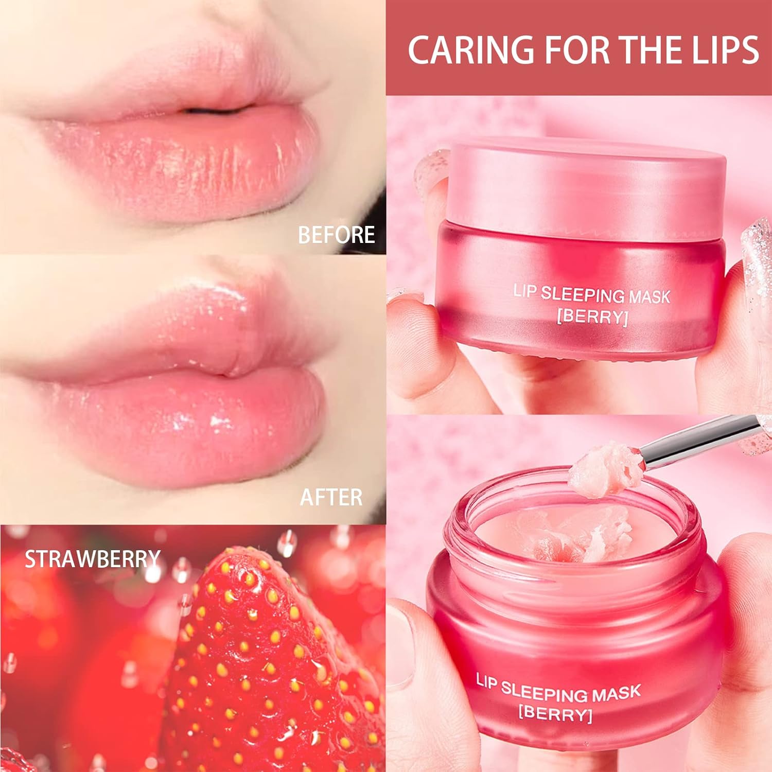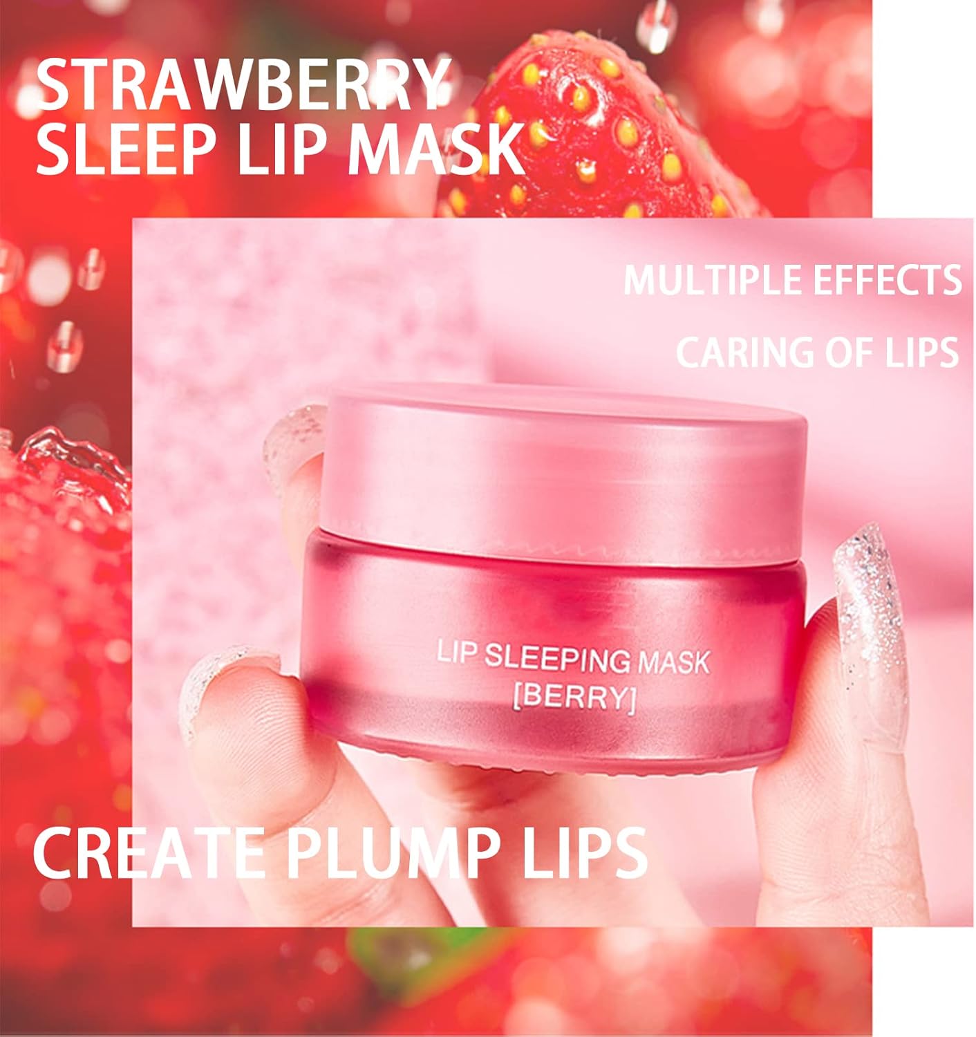 Shefave Lip Sleeping Mask,Lip Care Lip Moisturiser,Lip Mask Overnight Lip Balms,Dark Lips Repairs Dry Chapped Peeling Cracked Lips,Long lasting Moisture & Conditioning(Strawberry)