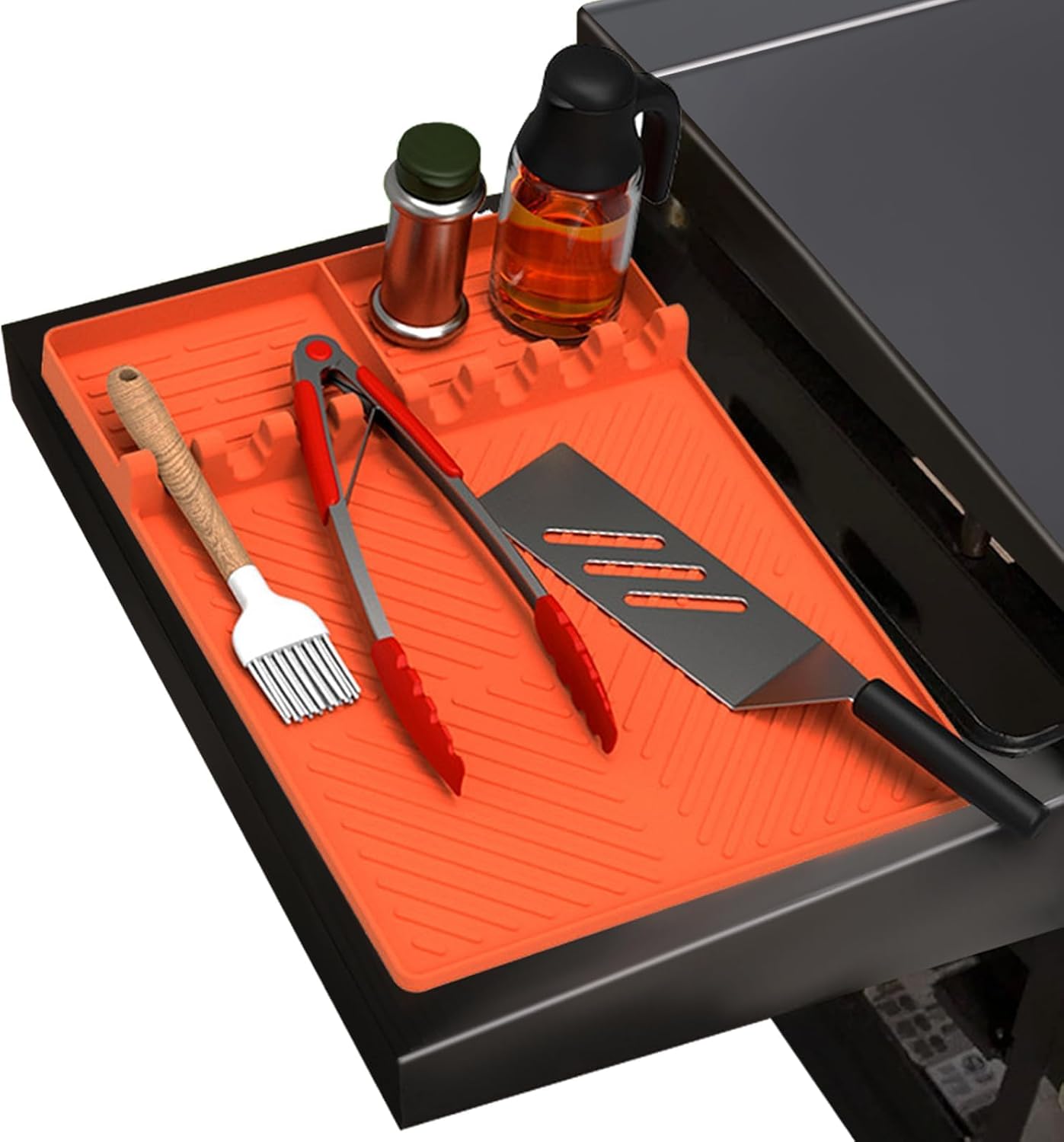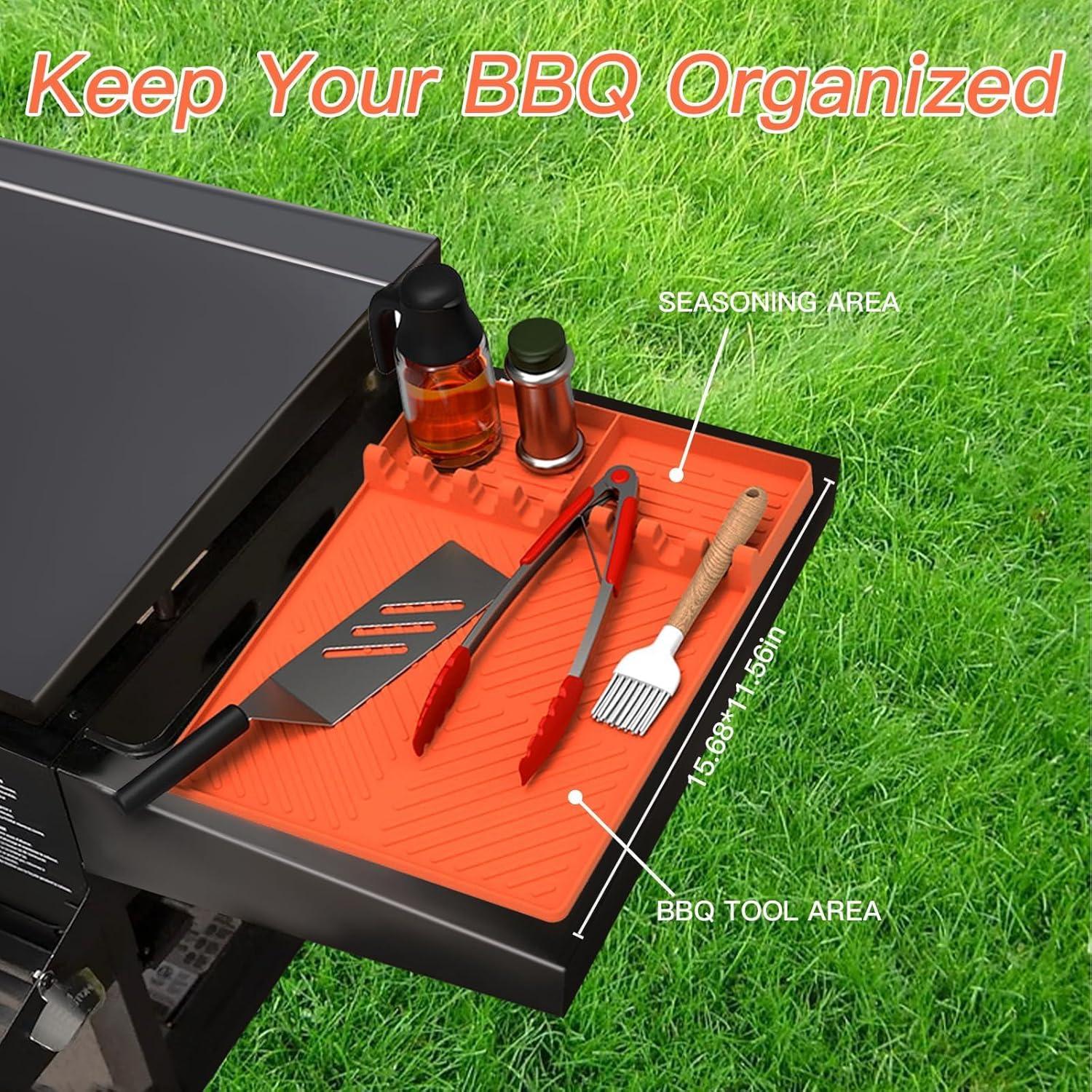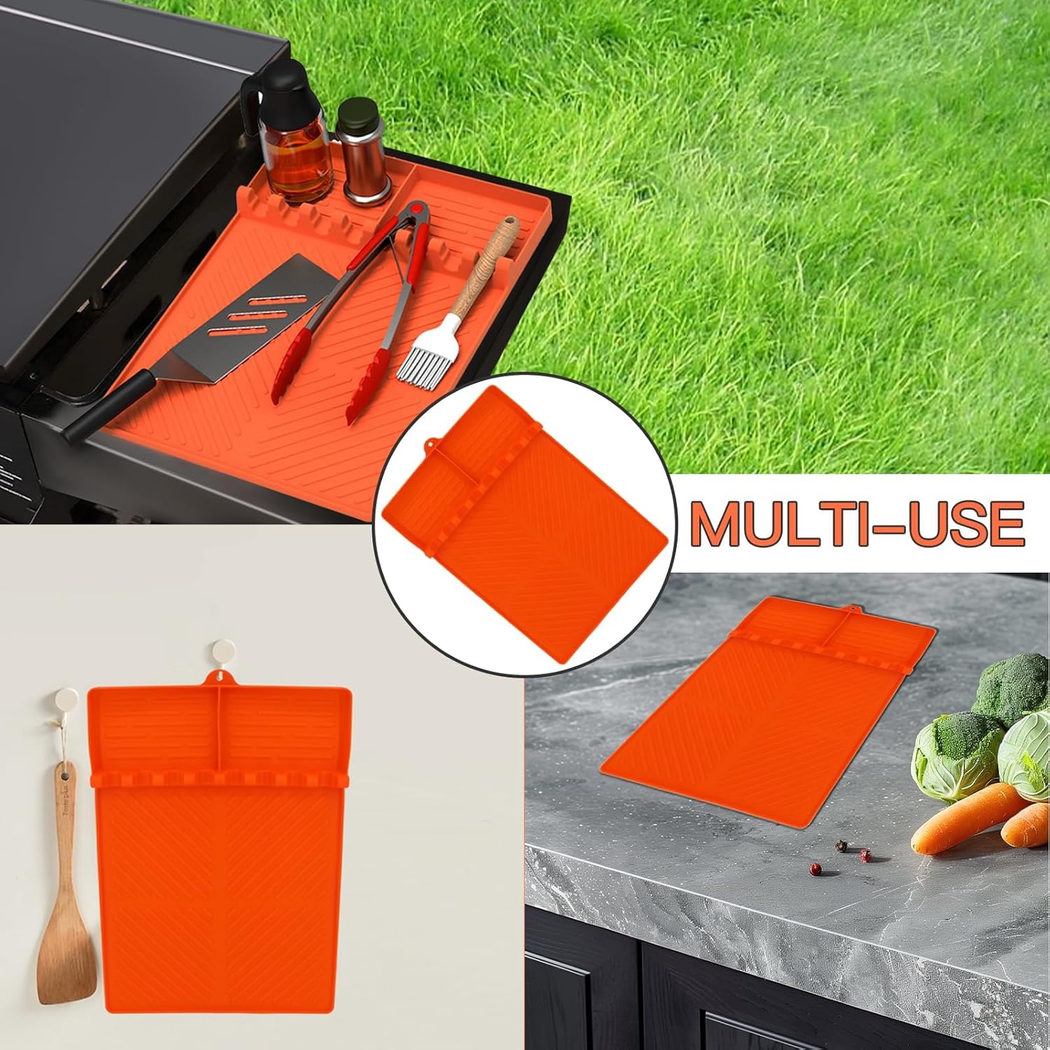 Shelf Grill Mats for Barbecue, Silicone BBQ Mat for Blackstone Griddle Side, 3-in-1 Heat Insulation Grills Pad Spatula Cushion Drop Mat for Barbecue Accessories Picnic Kitchen Supplies