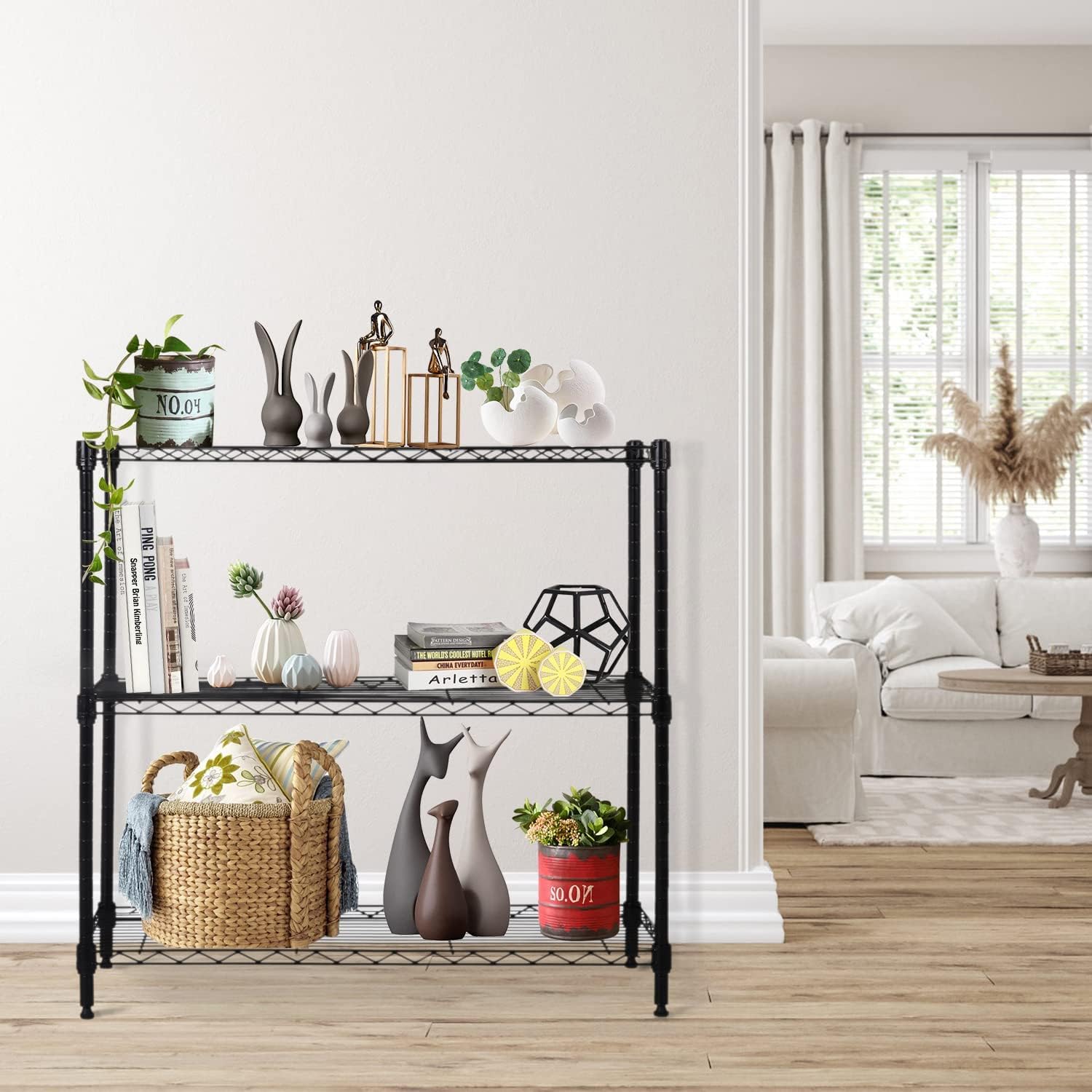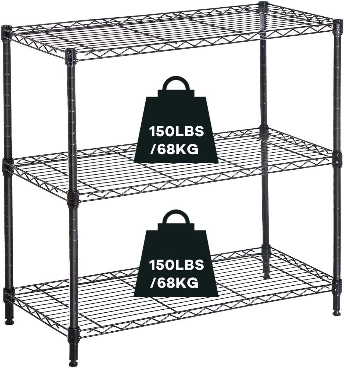 Shelving Units for Storage, Actask 3 Tier Shelves Units with Height Adjustable Wire Rack and Adjustable Levelling Feet for Kitchen Bathroom Garage Pantry Storage Units – 450LBS/204KG Max-Weight, Black