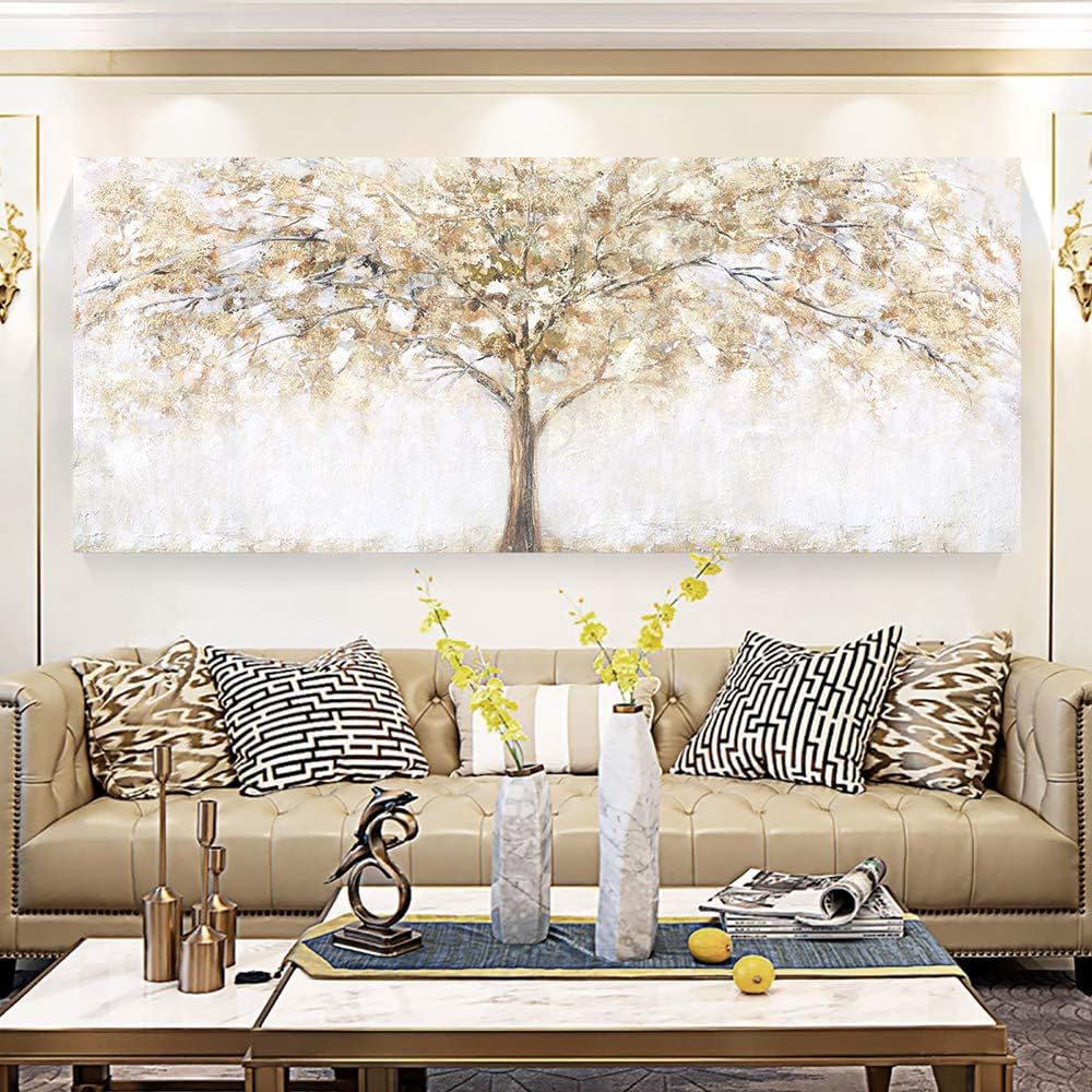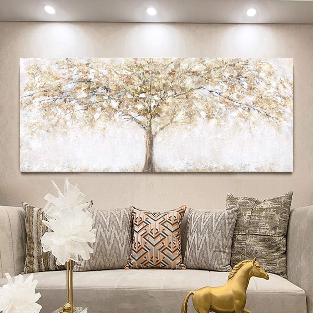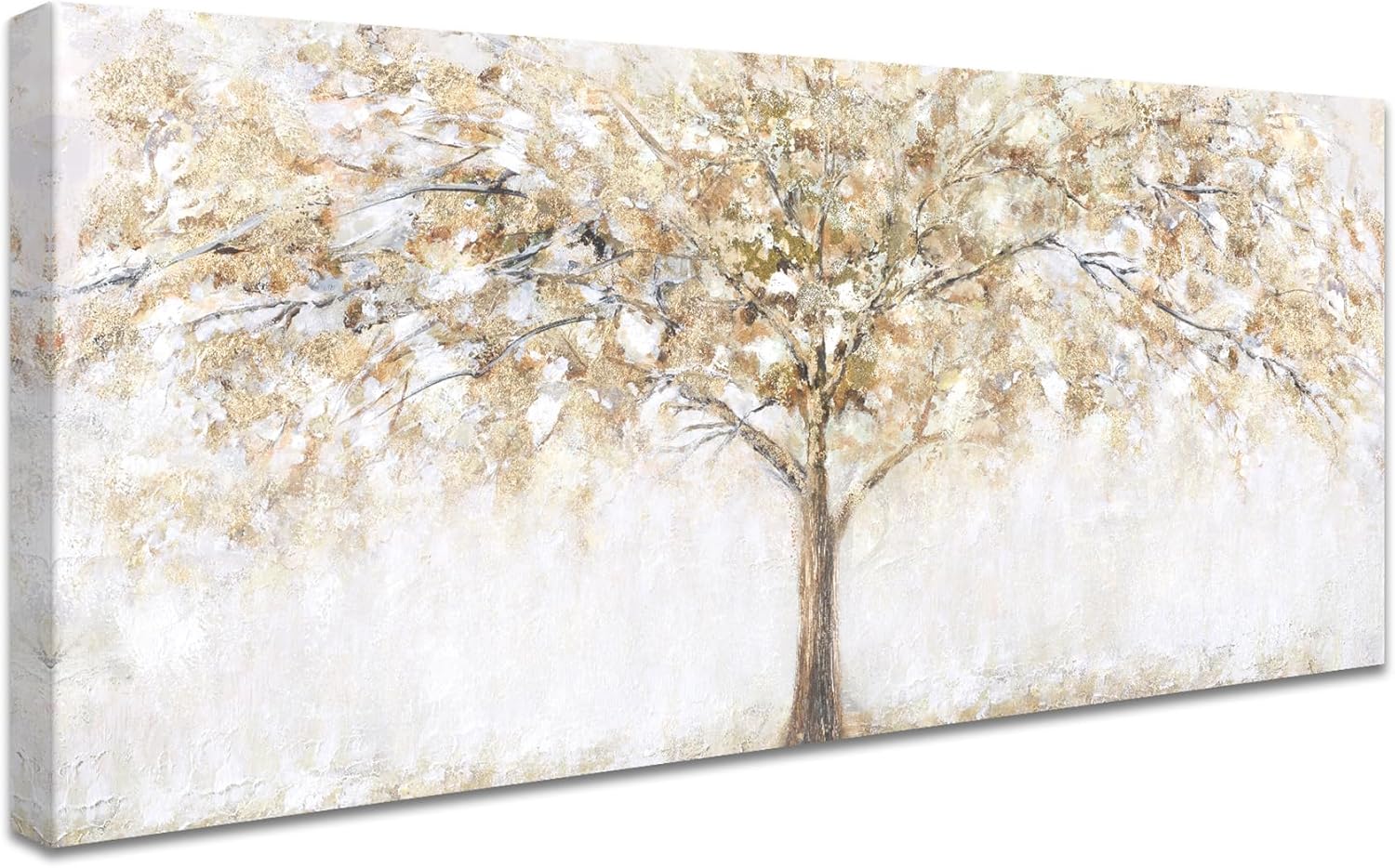 Shining Tree of Life Wooden Framed Landscape Canvas Wall Art Abstract Canvas Prints Canvas Painting Morden Wall Artwork Picture for Living Room Bedroom Home Office Decorations 50x120cm/20×48 inch
