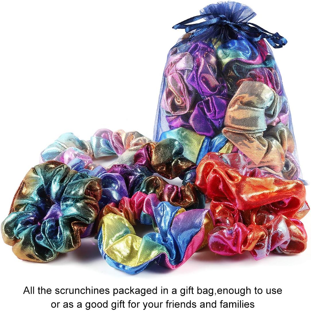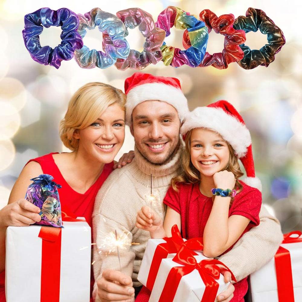 Shiny Metallic Scrunchies for Girls, 12 Pieces Hair scrunchies for Women Elastics Ponytail Holder Hair bands Teenage Girls Hair Accessories Gift