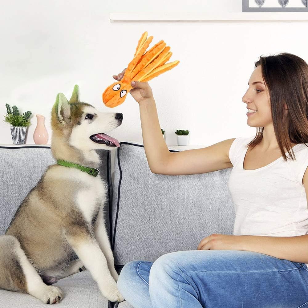 (as of [price_update_date] – Details No Stuffing Squeaky Dog Toys Octopus Plush Dog Chew Toy, No stuffing, Less Mess, Offer You a Tidy and Clean Home.