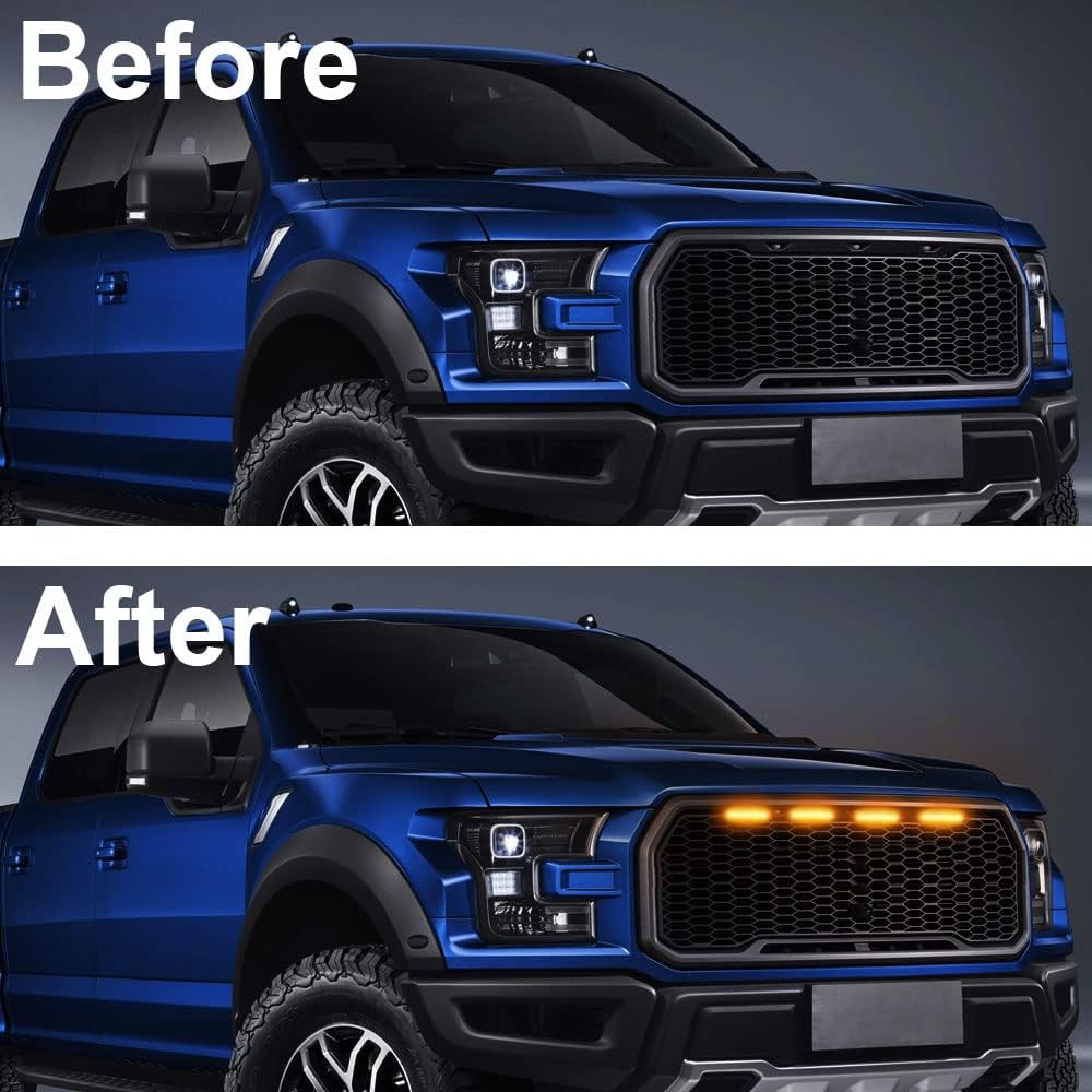 Sidaqi 12W 4-LED Amber Front Grille Lights for Car SUV Fo-rd F-150 Raptor 2014-2020 Waterproof LED Grille Warning Lights Front Bumper Cover Lamp Daytime Running Lights DRL 12V