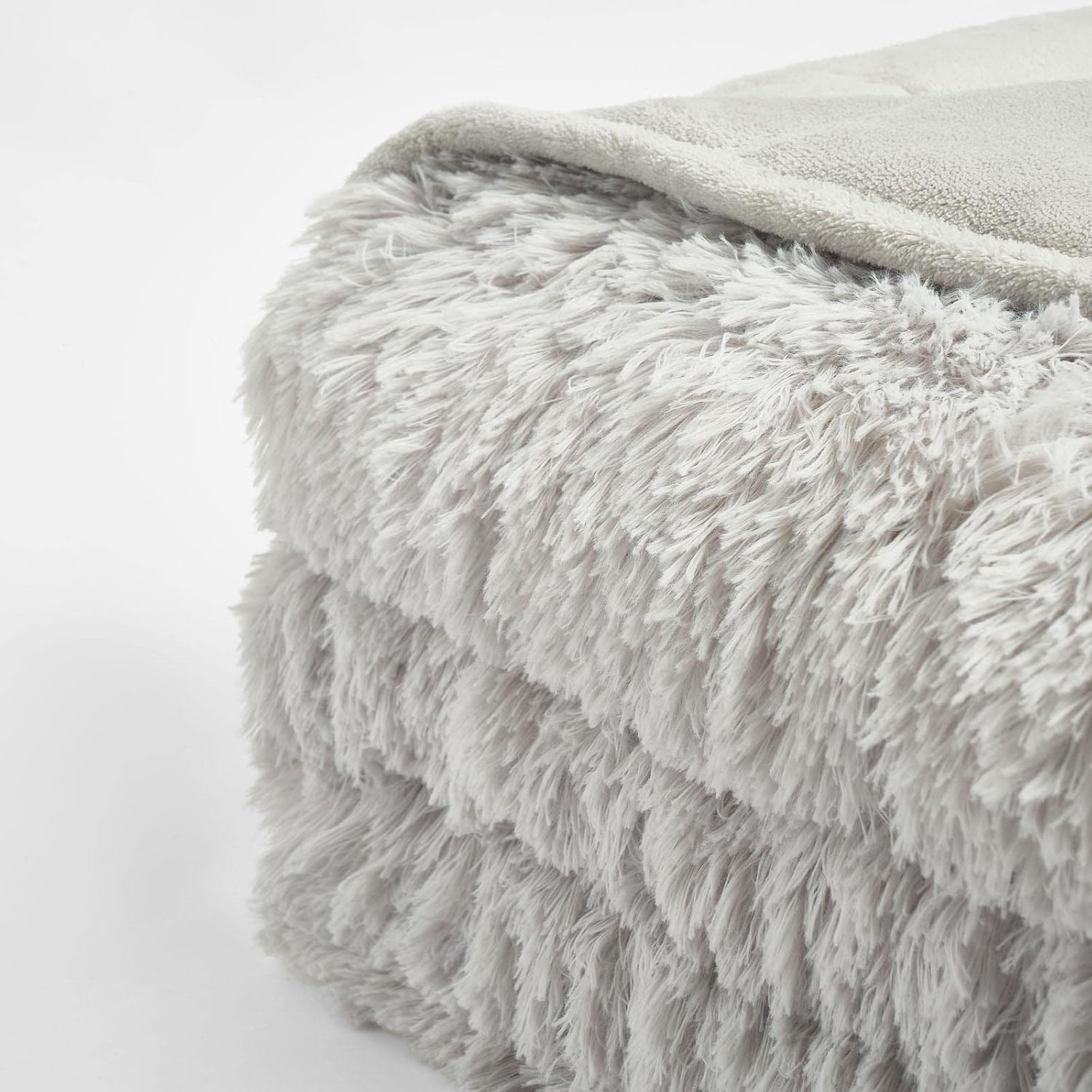 Sienna Fluffy Long Fleece Shaggy Soft Fleece Sensory Adults Weighted Blanket Reversible Sleep Throw – Silver, 125 x 150cm – 4kg
