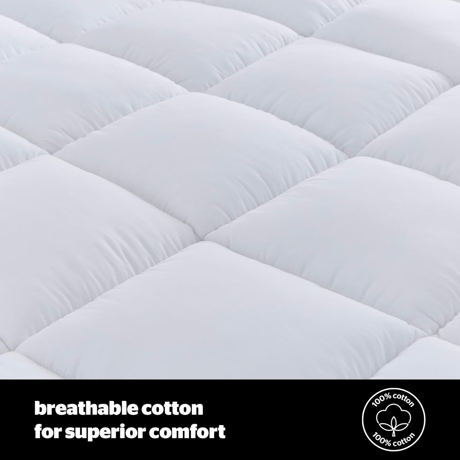 PURE COTTON COVER: This topper has a soft touch, downproof cover made of 100% cotton. The 300 thread count cover keeps the topper breathable for a truly blissful night’s sleep.