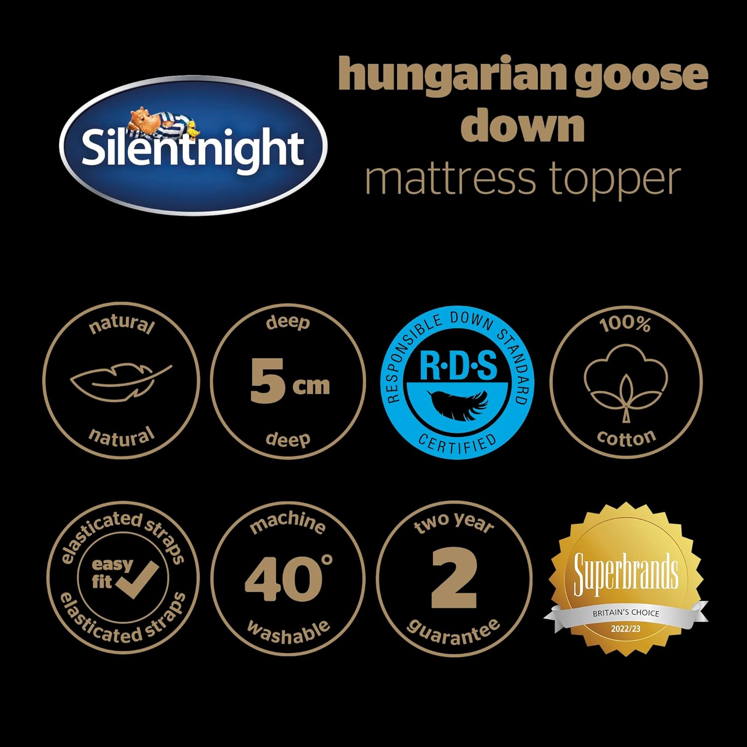 Silentnight Goose Feather and Down Mattress Topper King Bed – Luxury Hotel Quality Thick Soft Bed Topper with Hungarian Goose Filling and Pure Cotton Cover – Elasticated Straps – King Size